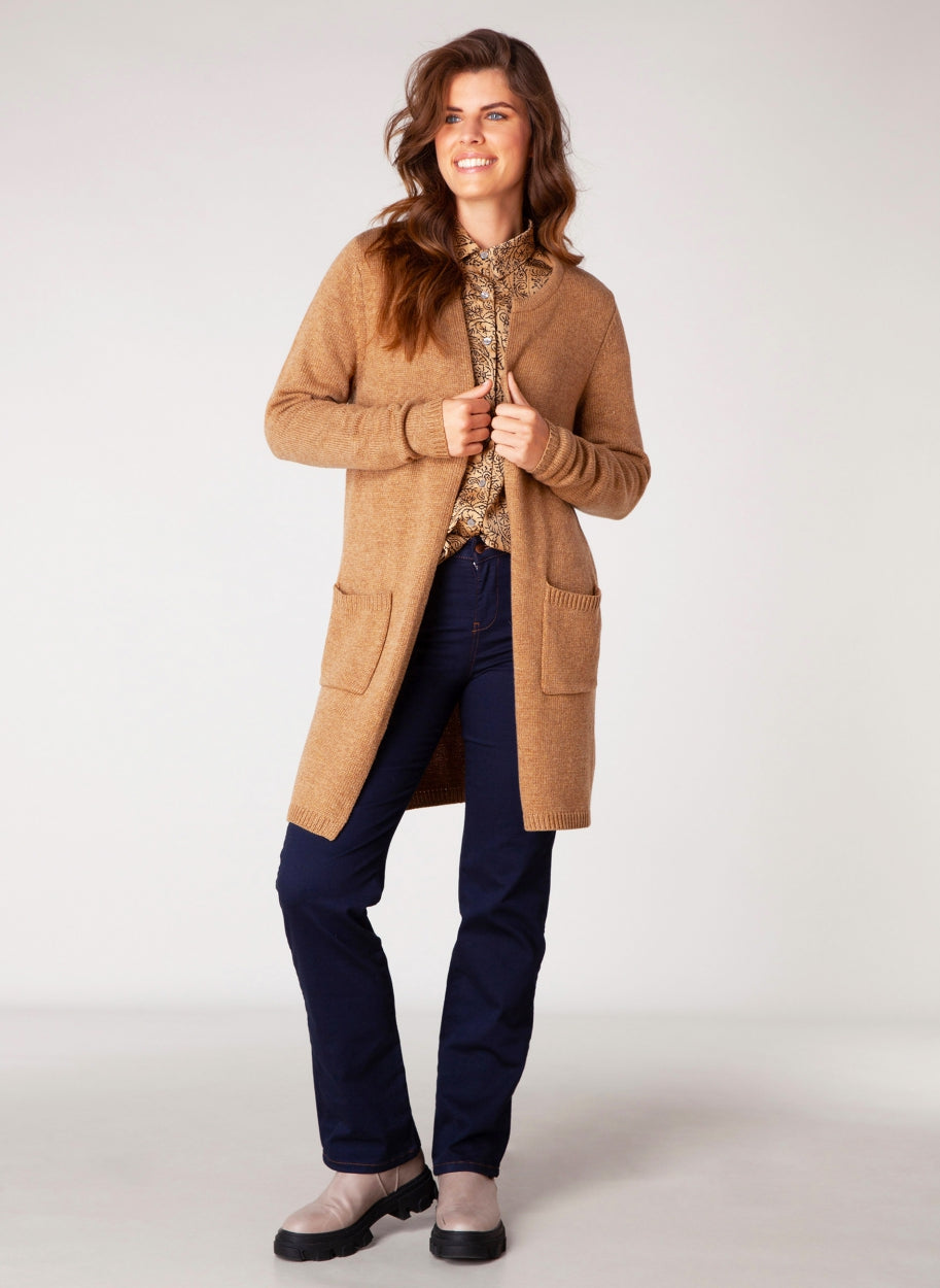 IvyBeau- Noralie prjónapeysa sem nær niður fyrir mjaðmirnar og fullkomin fyrir kaldari daga. Rúnað hálsmál og góðir vasar.