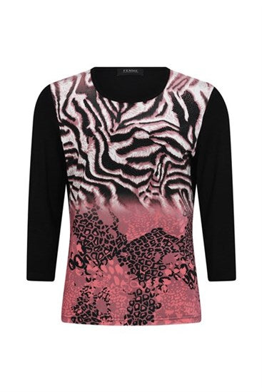 Femme - Fanný, léttur peysubolur með tiger mynstri og smá bling að framan, rúnað hálsmál. Léttur og þægilegur og hægt að vera í undir jakka eða peysu.
