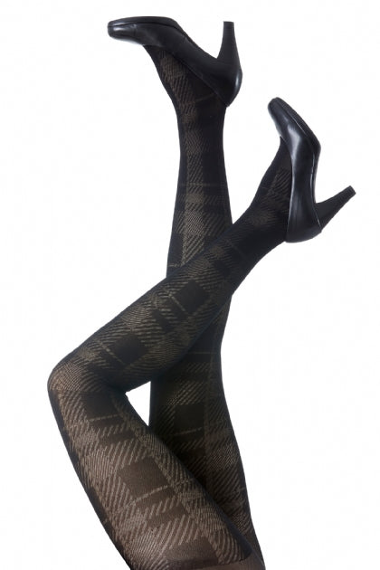 Svart-köflóttar microfiber 70 den, 3D sokkabuxur frá Festival sem ná vel upp.