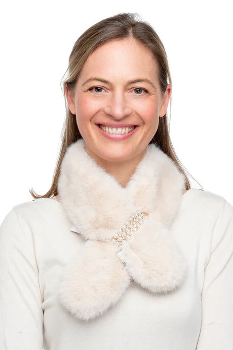 Franchetti Bond - Flottir og mjúkir loðkragar með perluskrauti, fást í svörtu og beige.