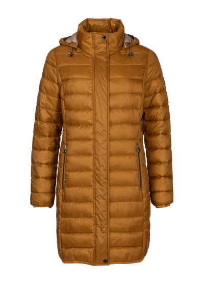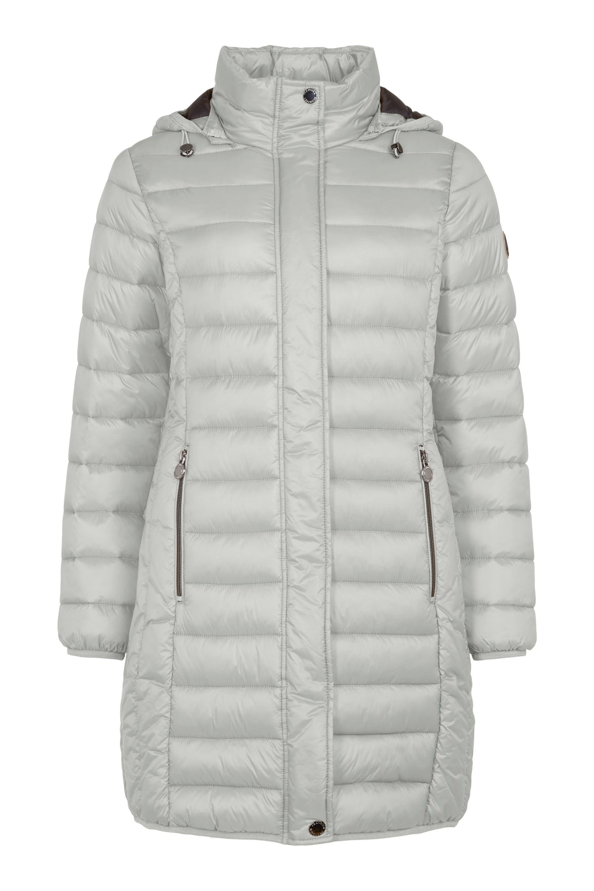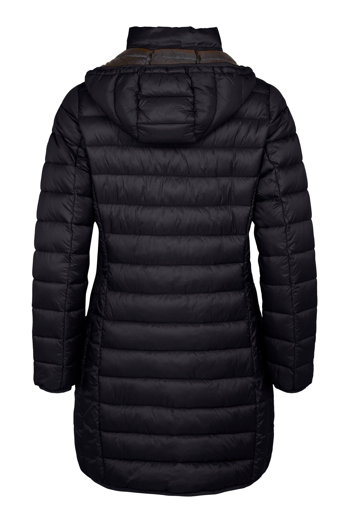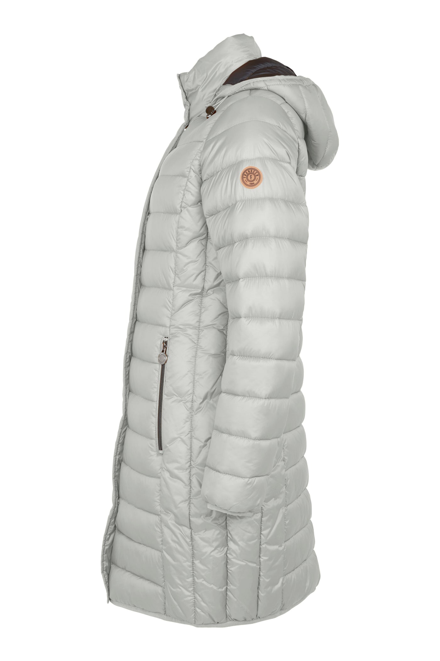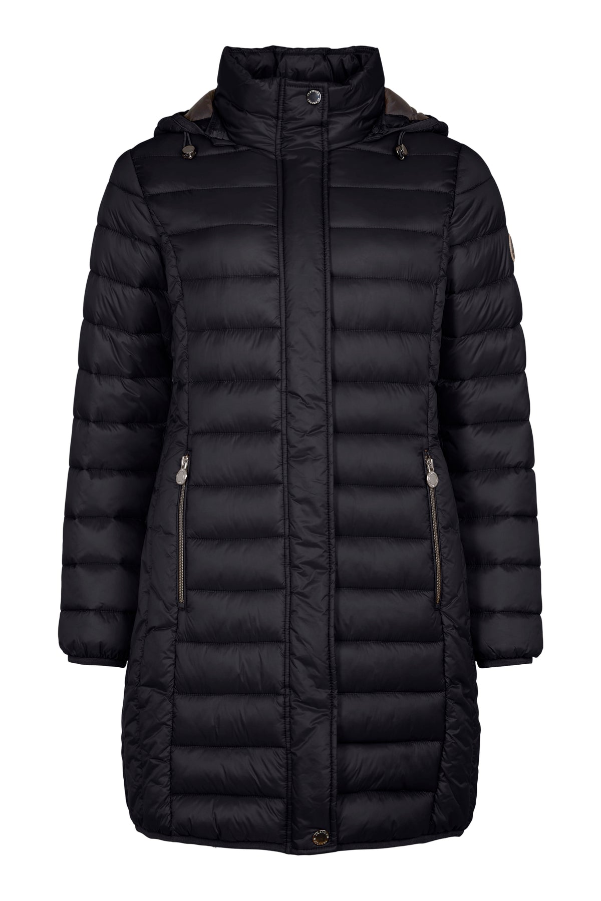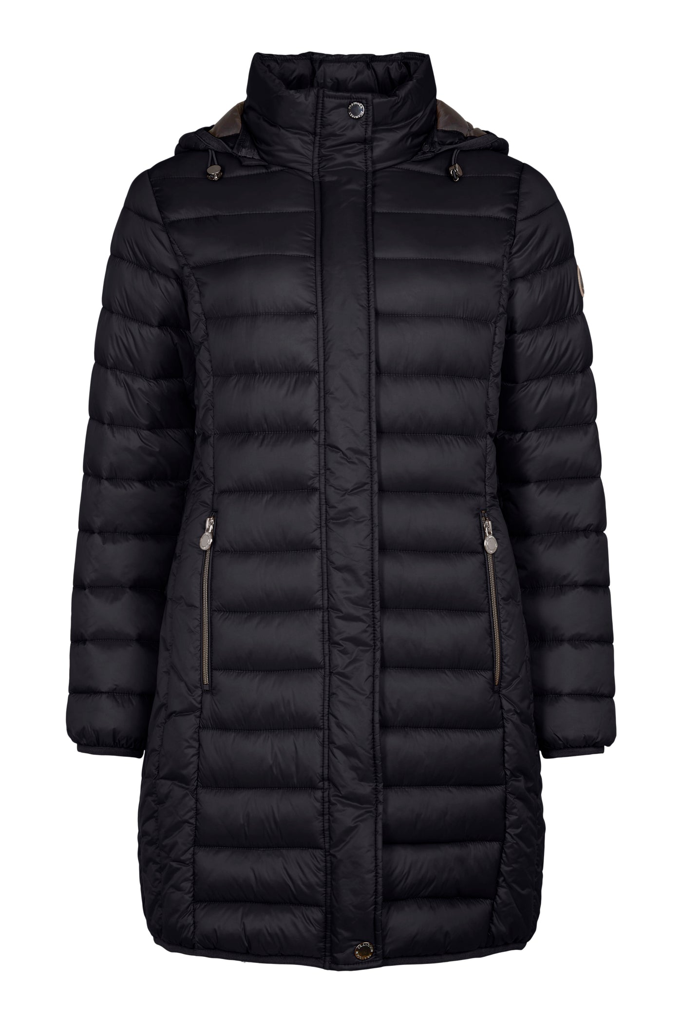 Gott snið og lokaðir renndir vasar á hliðum, hægt að taka hettuna af. Vel síð, nær niður fyrir rass og góð fyrir veturinn. Bæði rennd og hneppt að framan.