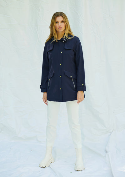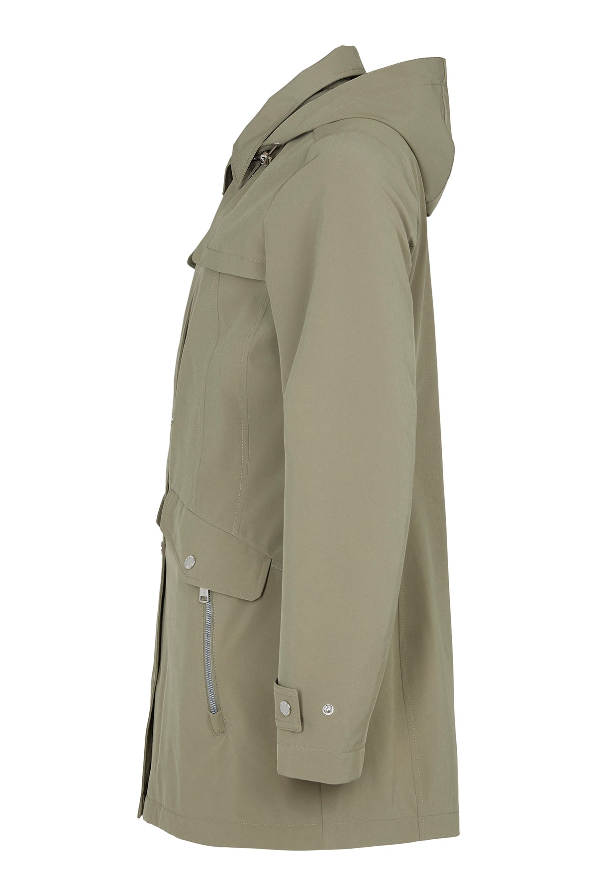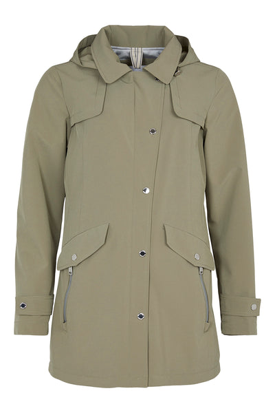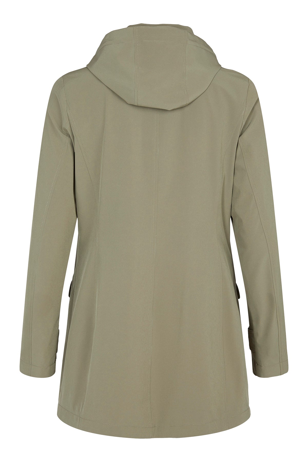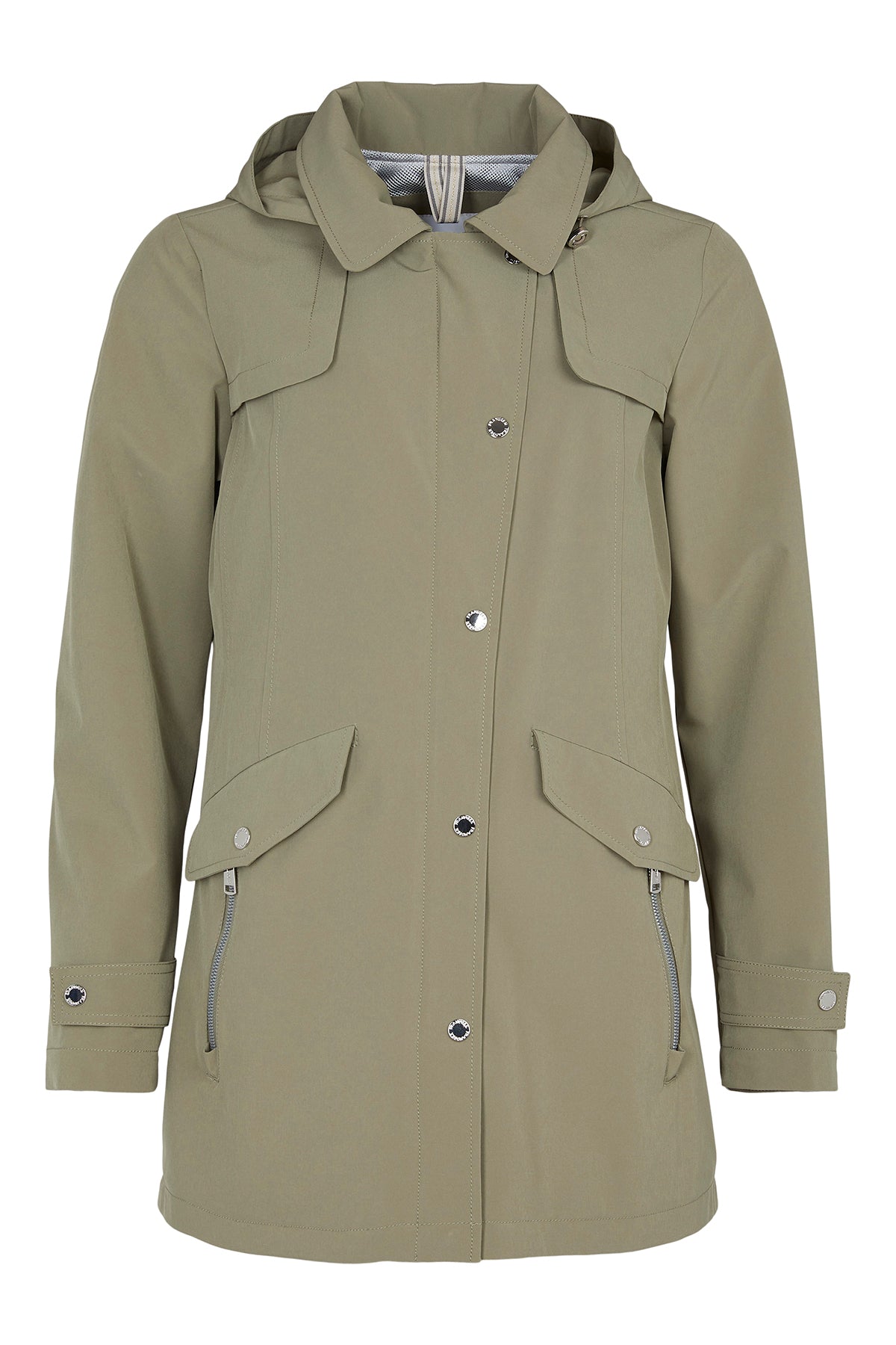 Frandsen - Sonja létt sumarúlpa úr lipru efni. Bæði rennd og smellt að framan með tvöföldum góðum vösum, bæði hnepptum og með rennilás, hetta með böndum til að draga saman. Hægt að taka af. Kemur í tveimur litum.
