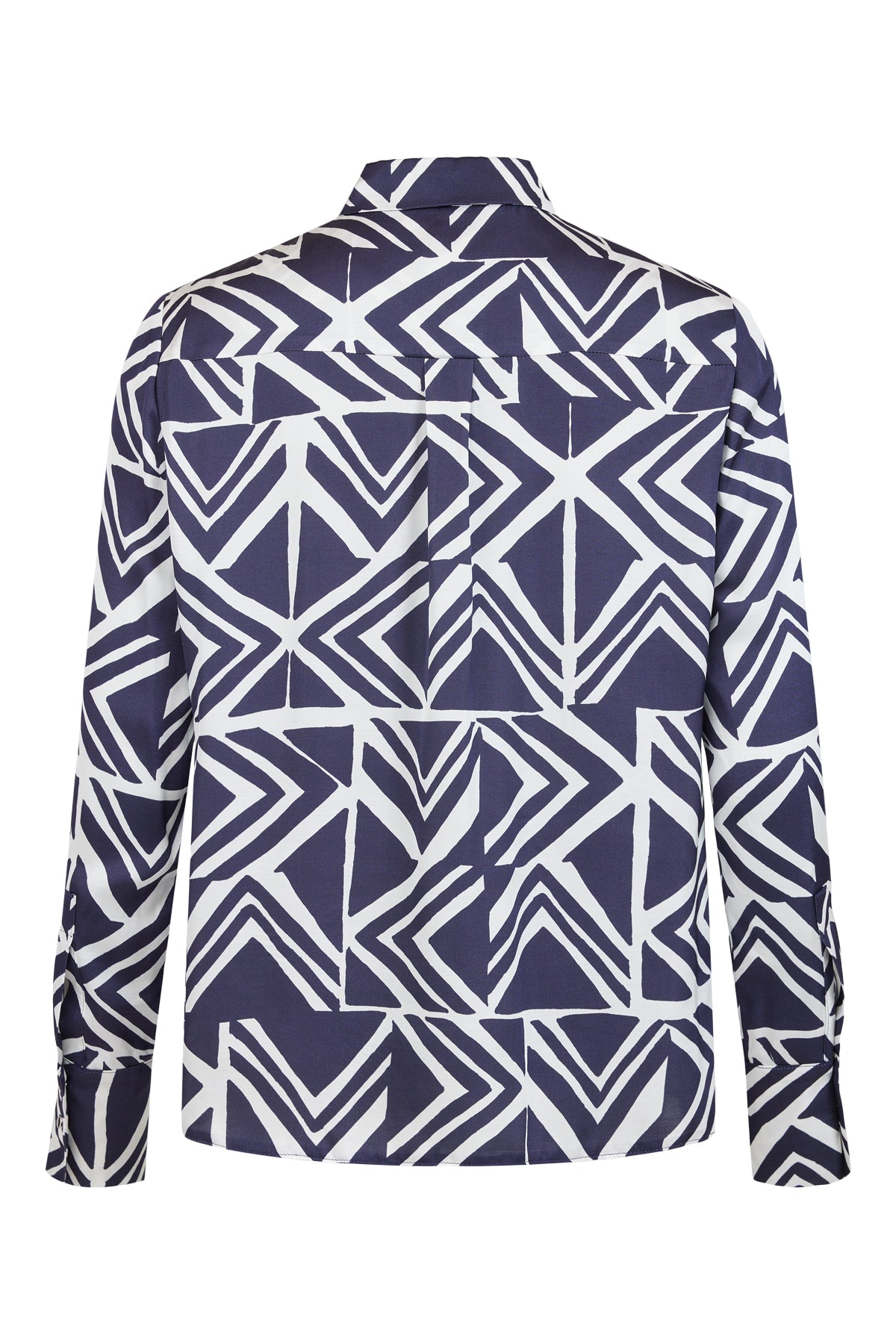 Habella - Nika létt falleg síðermablússa með silki áferð, rúnuðu hálsmáli, kraga, tölum niður að framan og stroffi á ermum með tveimur tölum.