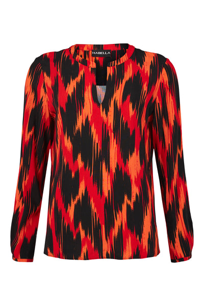 Habella - Verena falleg mynstruð síðermablússa með V-hálsmáli.