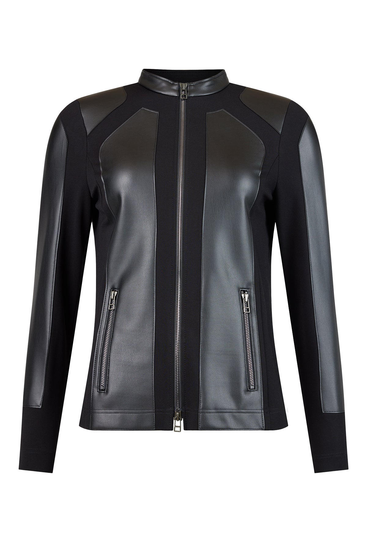 I'cona - Flottur biker pleðurjakki, renndur að framan og með renndum vösum. Rúnaður kragi og teygjuefni að hluta.