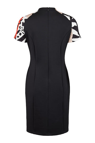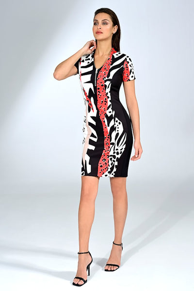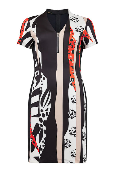 I'cona, stórglæsilegur kjóll með stuttum ermum og V-hálsmáli, rennilás að framan.