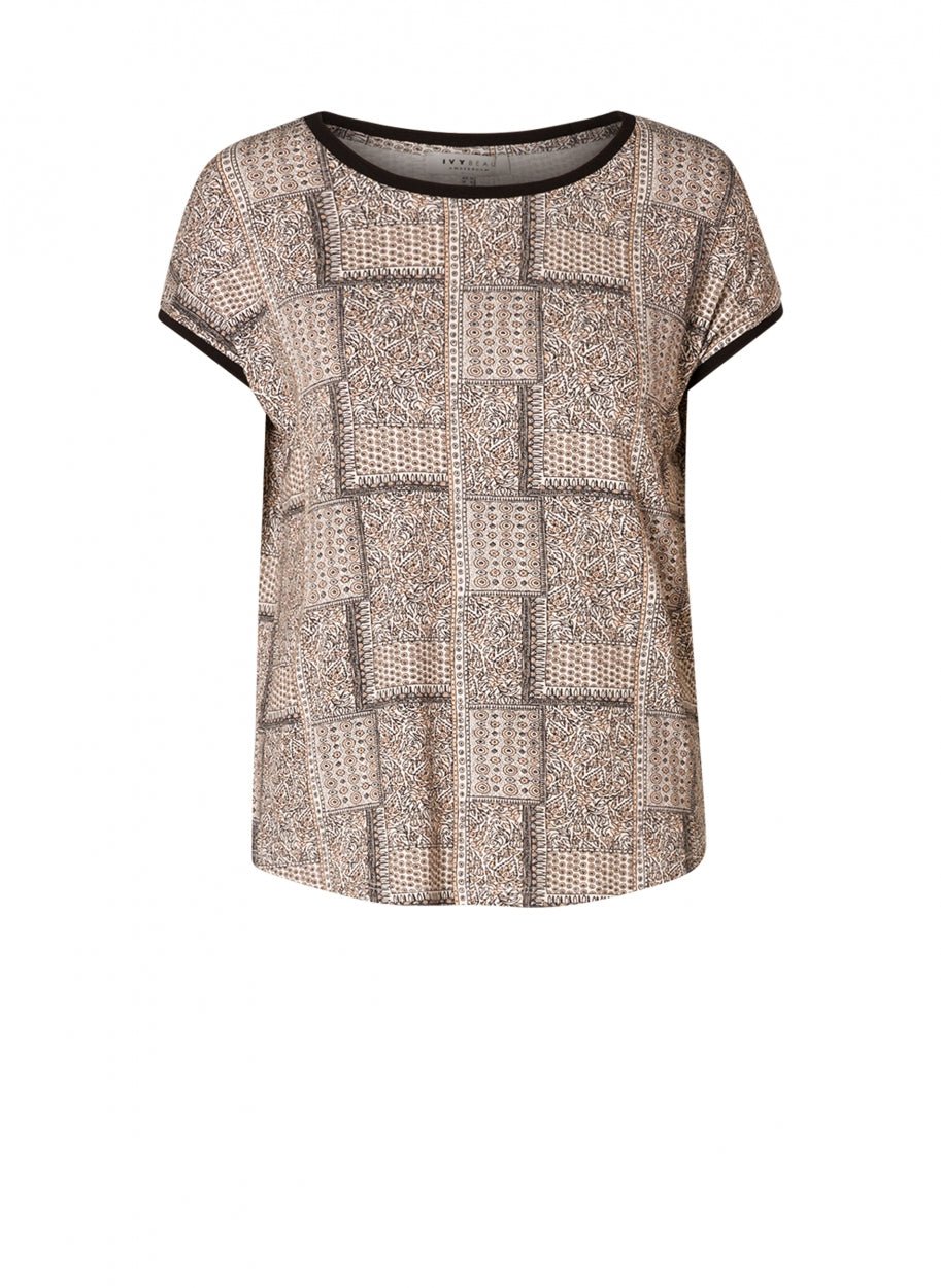 Ivy Beau stuttermabolur sem nær vel upp í hálsinn, fínlegt mynstur í efni.