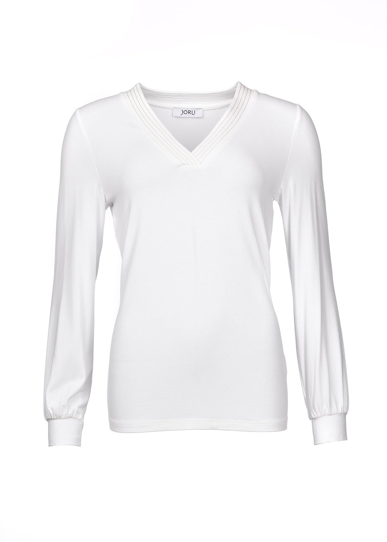 Jörli - Mila, langermabolur með V-hálsmáli, stroffi á ermum og silfur þræði í hálsmáli.