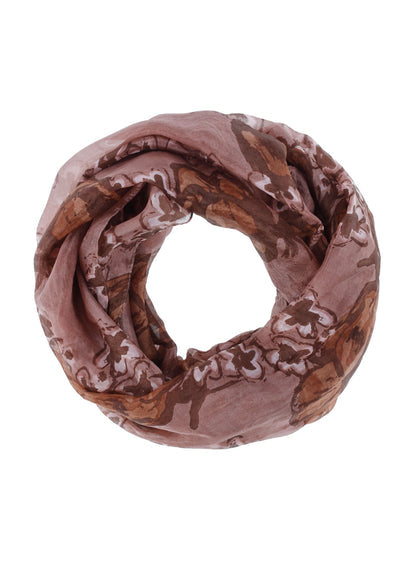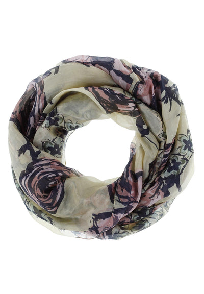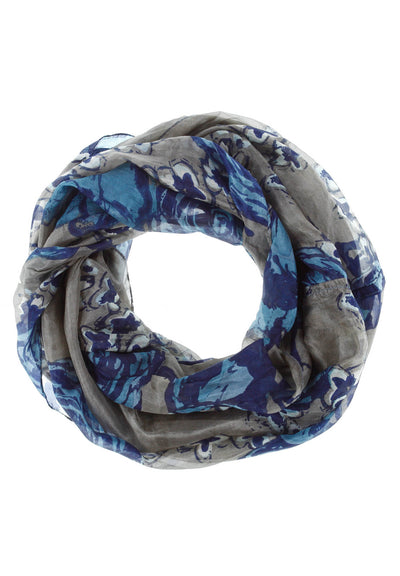 Léttur og lipur hringklútur með snúningi, sem gerir það að verkum að hann fellur vel þegar hann liggur óvafinn um hálsinn.