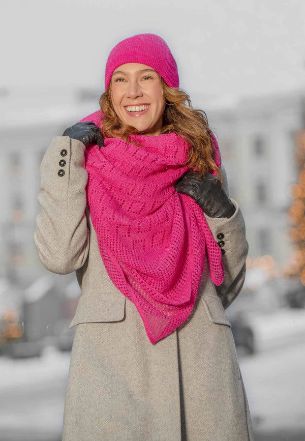 Lasessor - Ottavia ferkantaður prjónaður trefill með fallega ofnu mynstri. Hægt að nota sem trefil eða bregða yfir sig eins og slæðu.