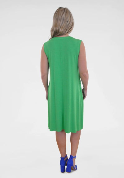 Navigazione - Lina kjóll úr viscose úr bambustrefjum, með V-hálsmáli, riffluðu efni að ofan og tvö lítil silfurhjörtu til hliðar að framan. Flottur í vinnuna, sólina og við ýmis önnur tækifæri.