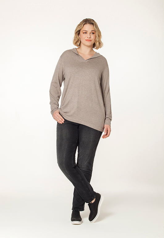 No Secret - Mjúk og þægileg peysa með hettu, löngum ermum og V-hálsmáli.