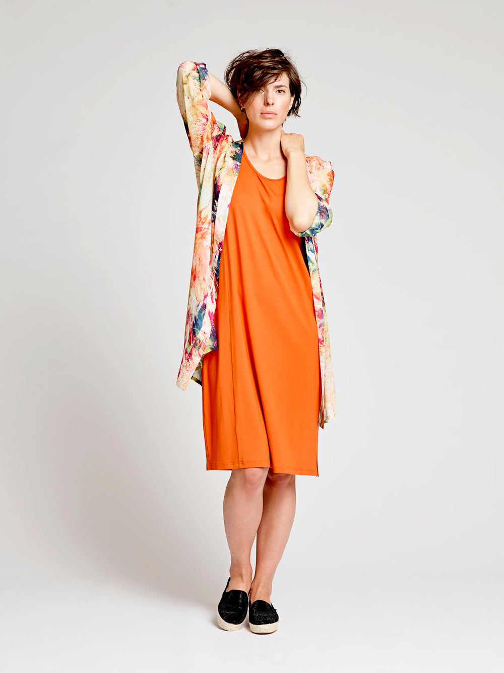Q'neel - Ashley sparilegt kímanó með fínlegri áferð og fallegu mynstri, 3/4 ermasídd. Flott yfir allskonar kjóla og tunikur.