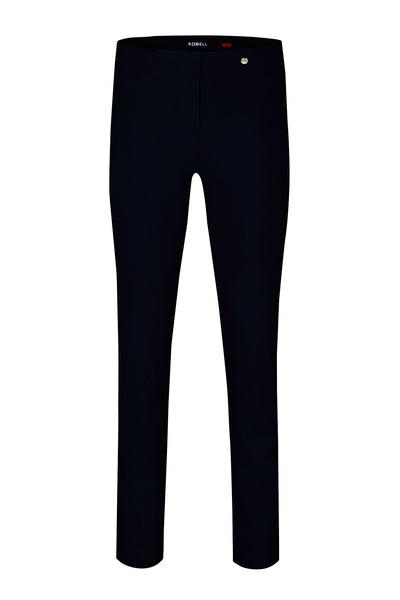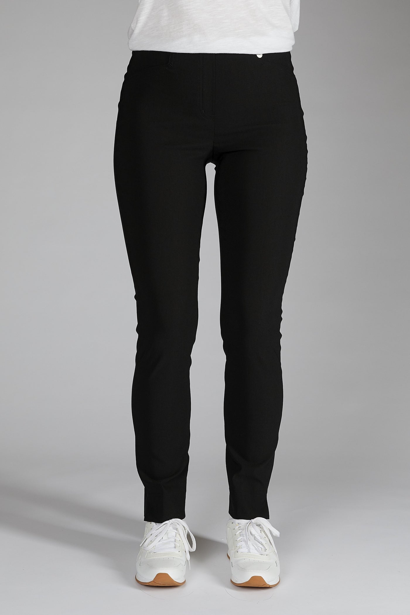 Robell súperþægilegar strechbuxur með teygju í mittið, rennilásaklauf að framan, en það er bara fyrir útlitið. Flottar og þægilegar hversdagsbuxur sem sitja vel, góðar stærðir og mikið strech í efni. Síddin er ca 78 cm.