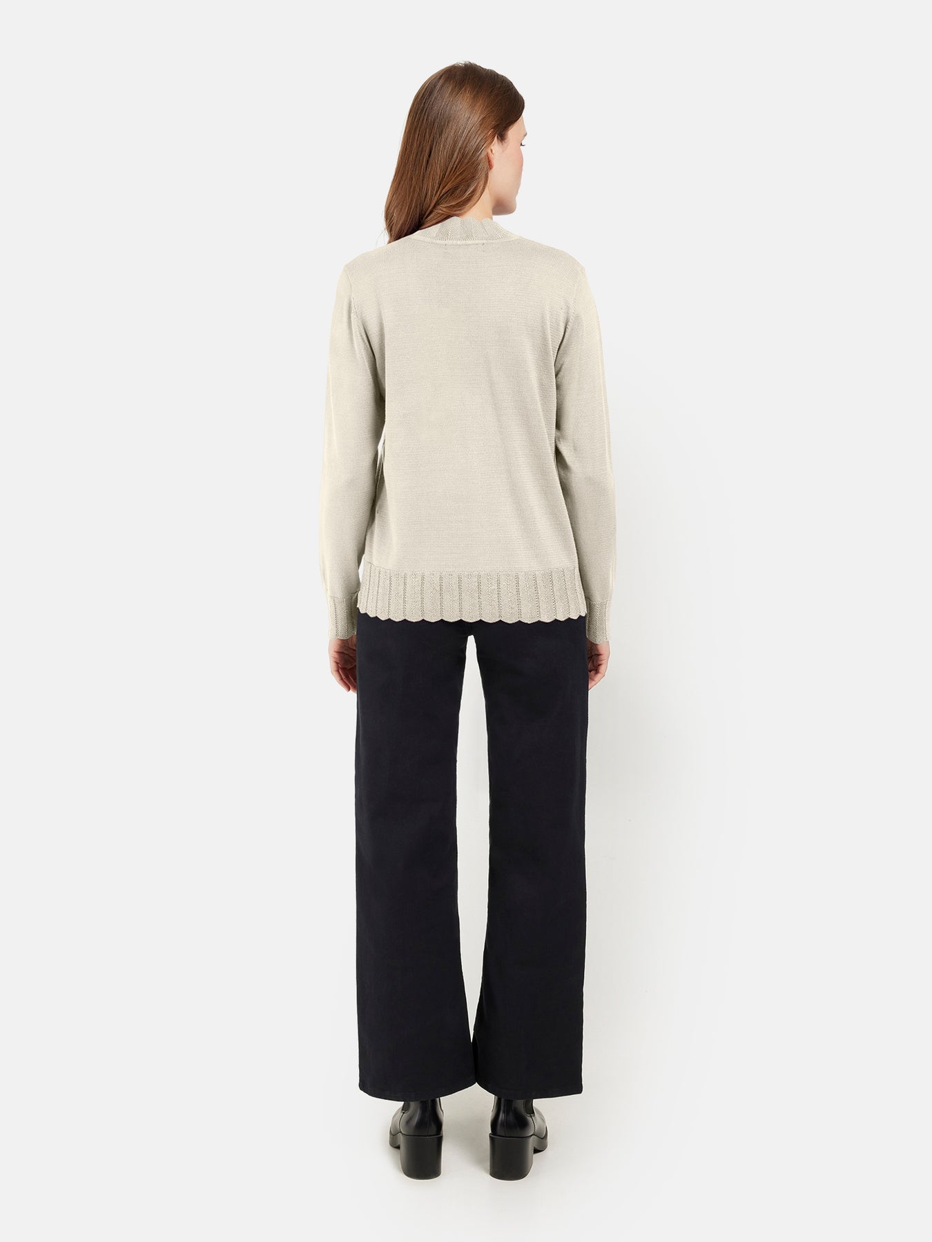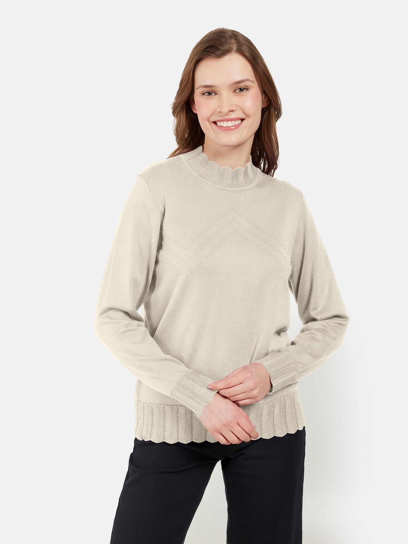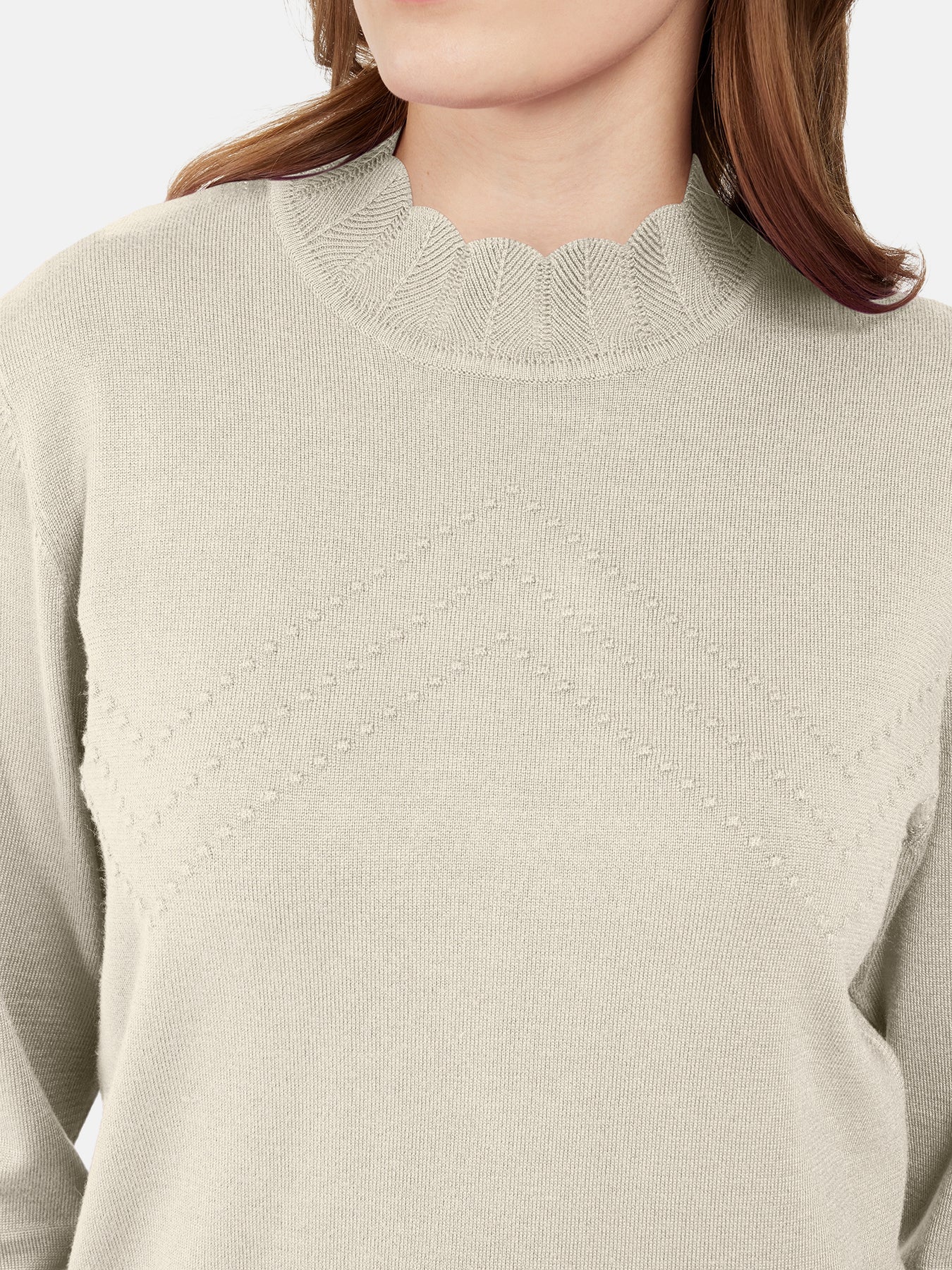 Signature - Gracie falleg og þægileg prjónapeysa. Rúnað hálsmál með smá kraga og stroffi, langar ermar með stroffi, falleg áferð í efni. Tilvalin peysa fyrir kaldari daga.