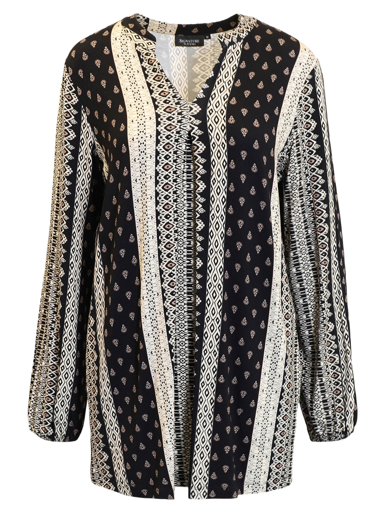 Signature - Harley flott og sparileg tunika. Rúnað hálsmál með mjóum kraga sem endar í V-hálsmáli, langar ermar. Passar vel hvar sem er, bæði hversdags og spari.