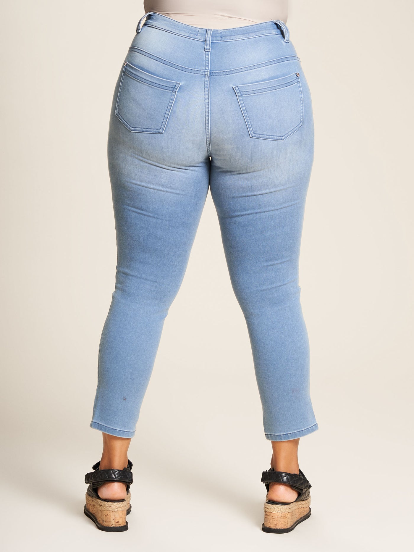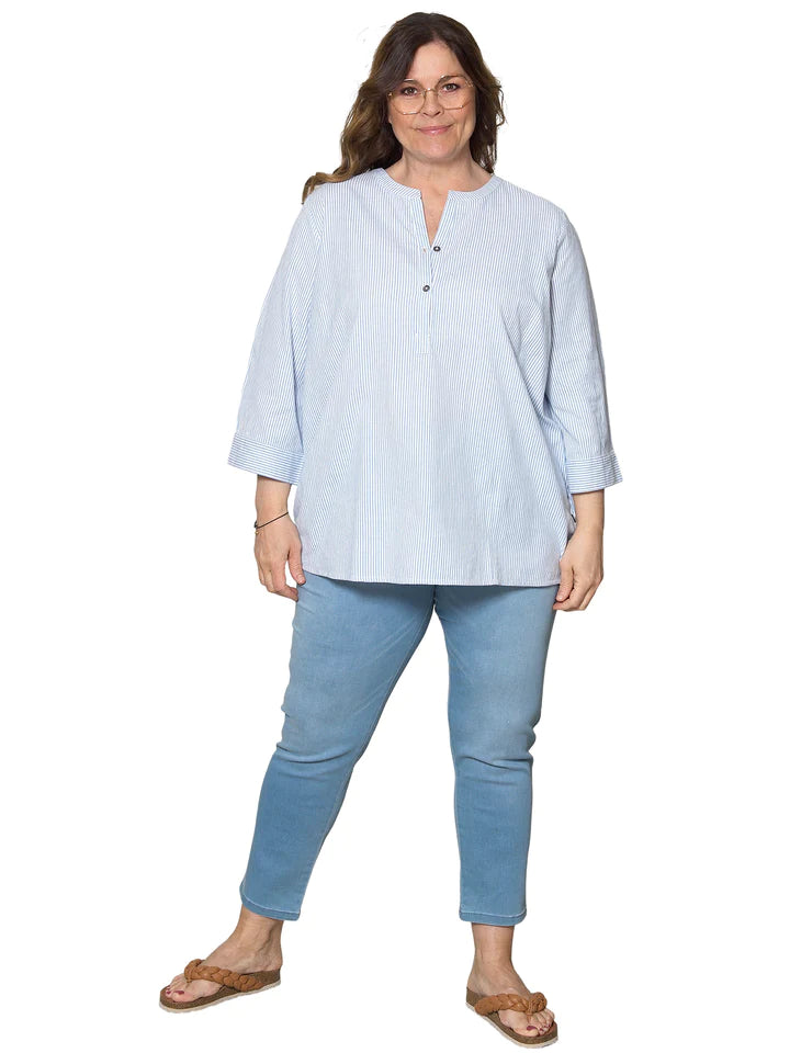 Snið Carmen, með mjaðmasniði, hentar vel fyrir þær sem taka meira yfir rass og læri en minna í mittið. Mjúkt og gott gallaefni.