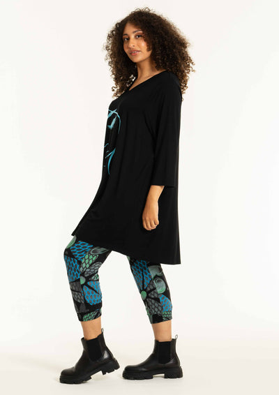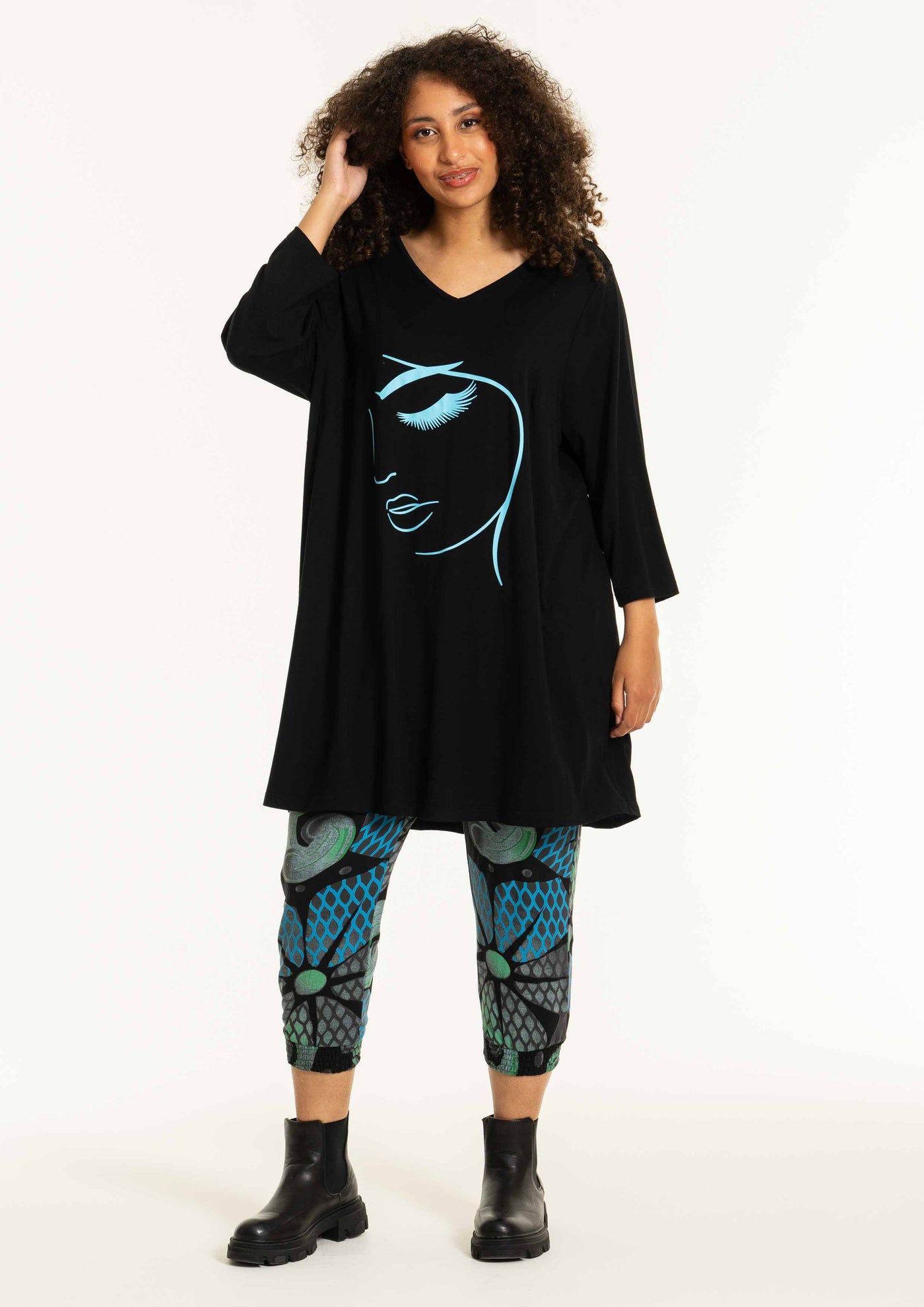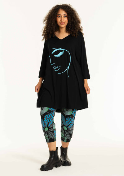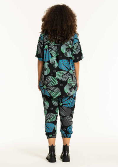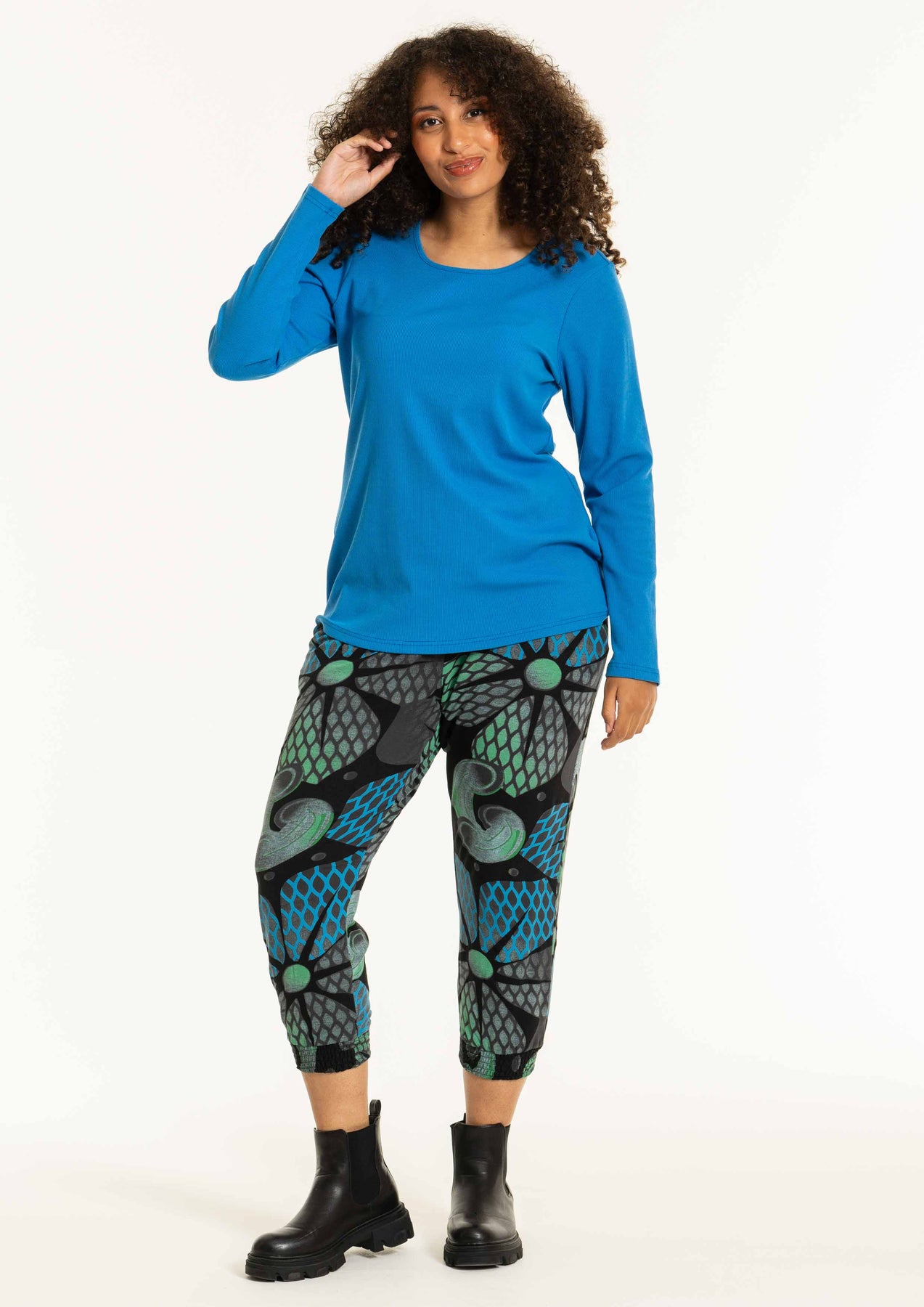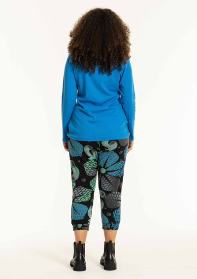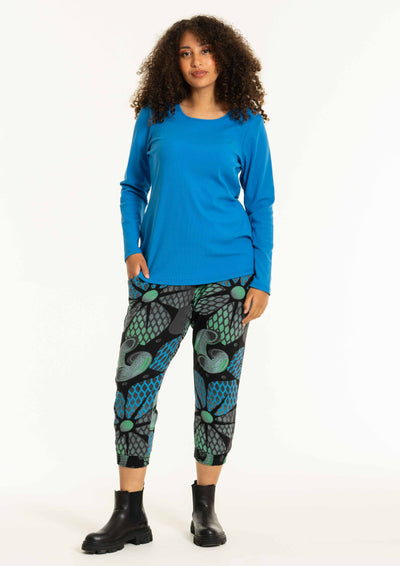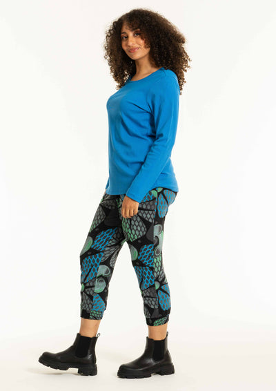 Studio - Gudrun sportlegar og þægilegar mynstraðar kvartbuxur með stroffi að neðan úr mjúku viscose efni, opnir hliðarvasar og teygja í mitti sem er slétt að framan og rykkt að aftan.