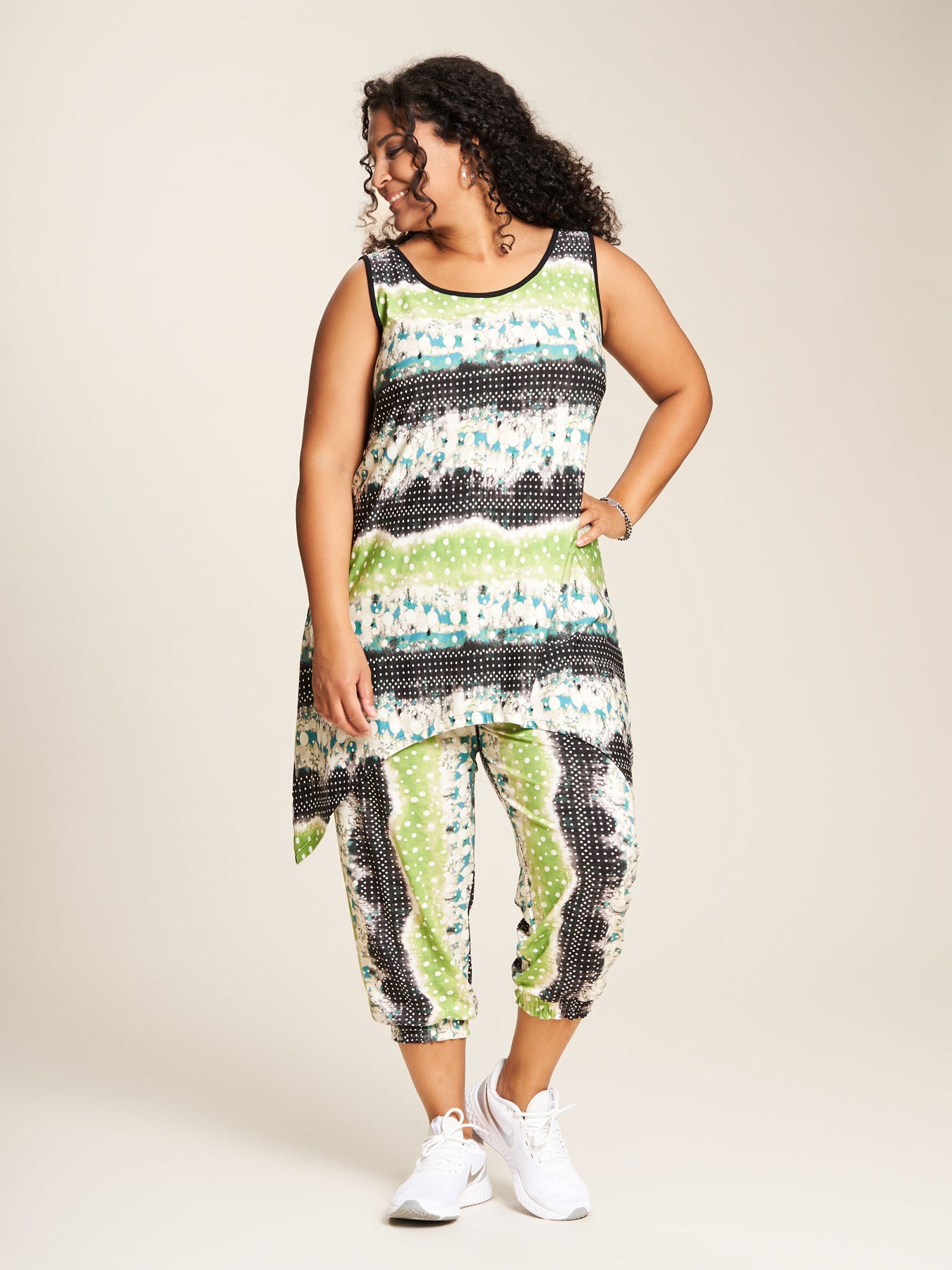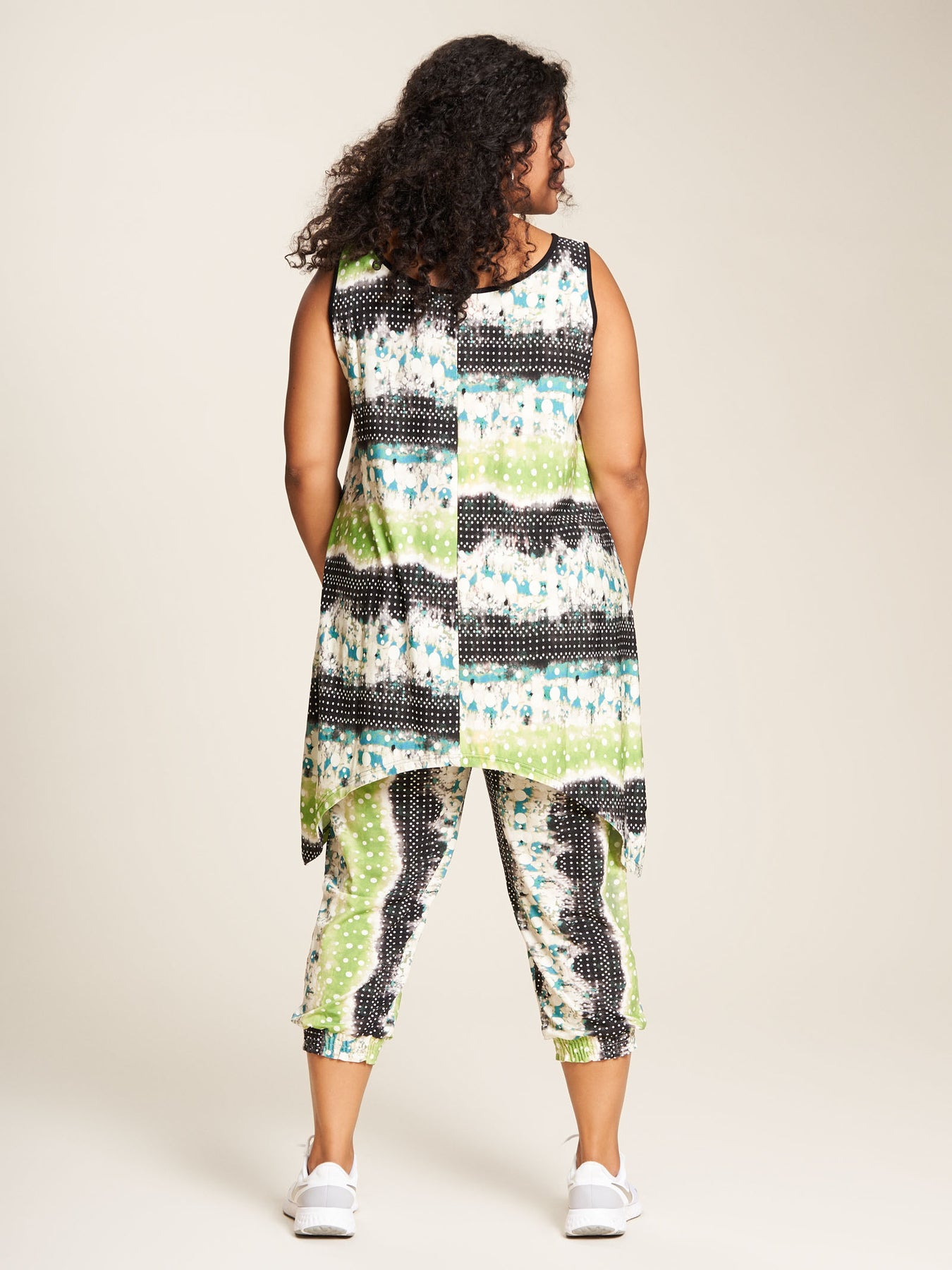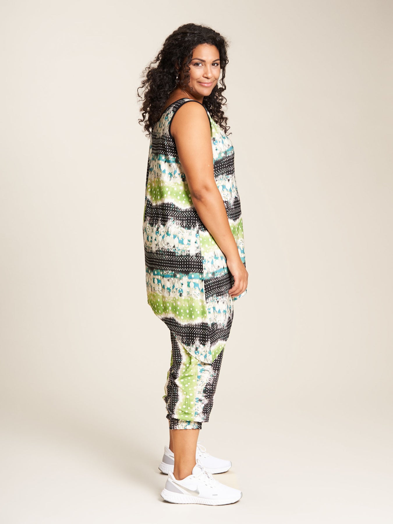 Studio - Gudrun. Sumarleg ermalaus tunika, marglituð, rúnað-hálsmál og gott A-snið.