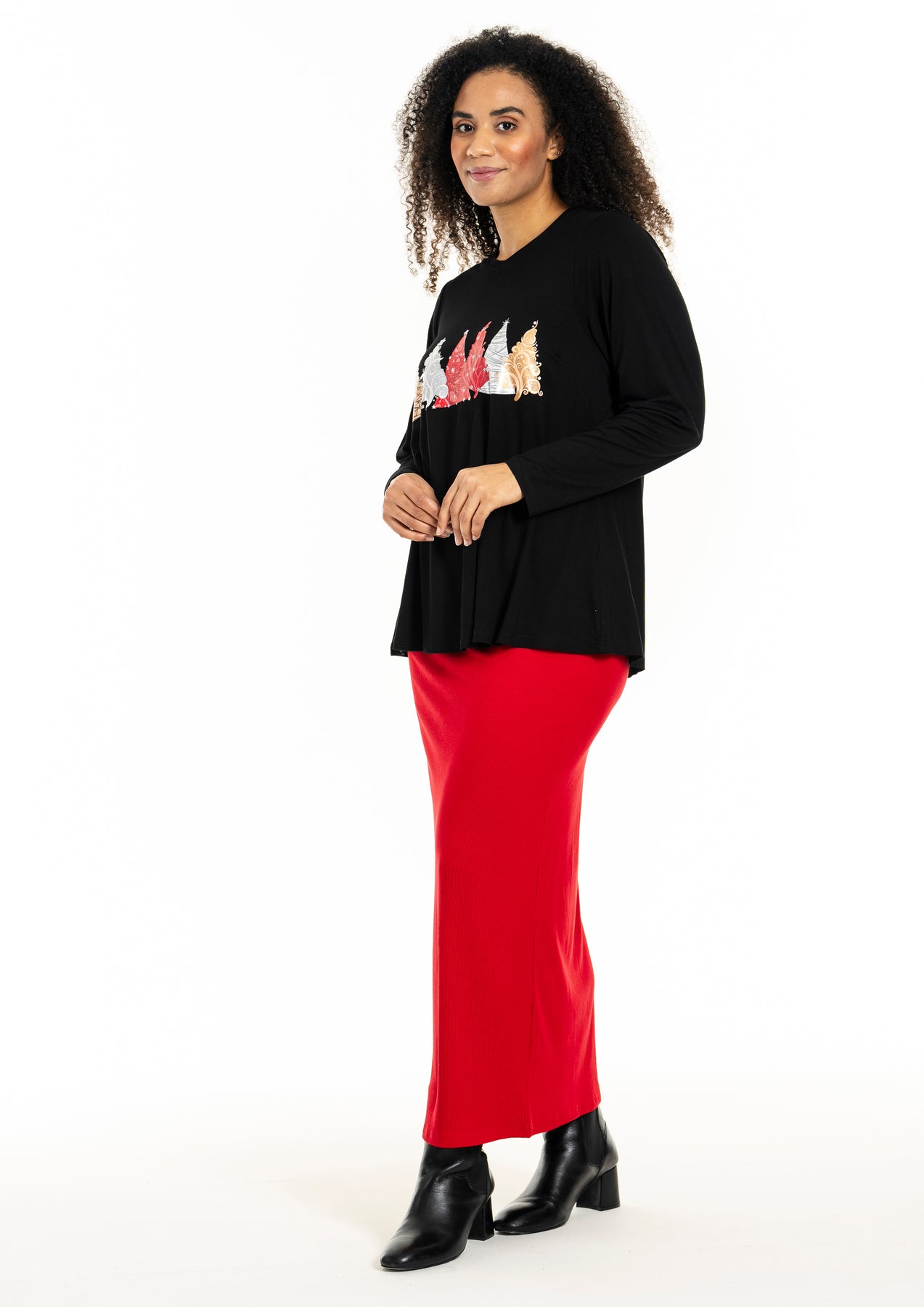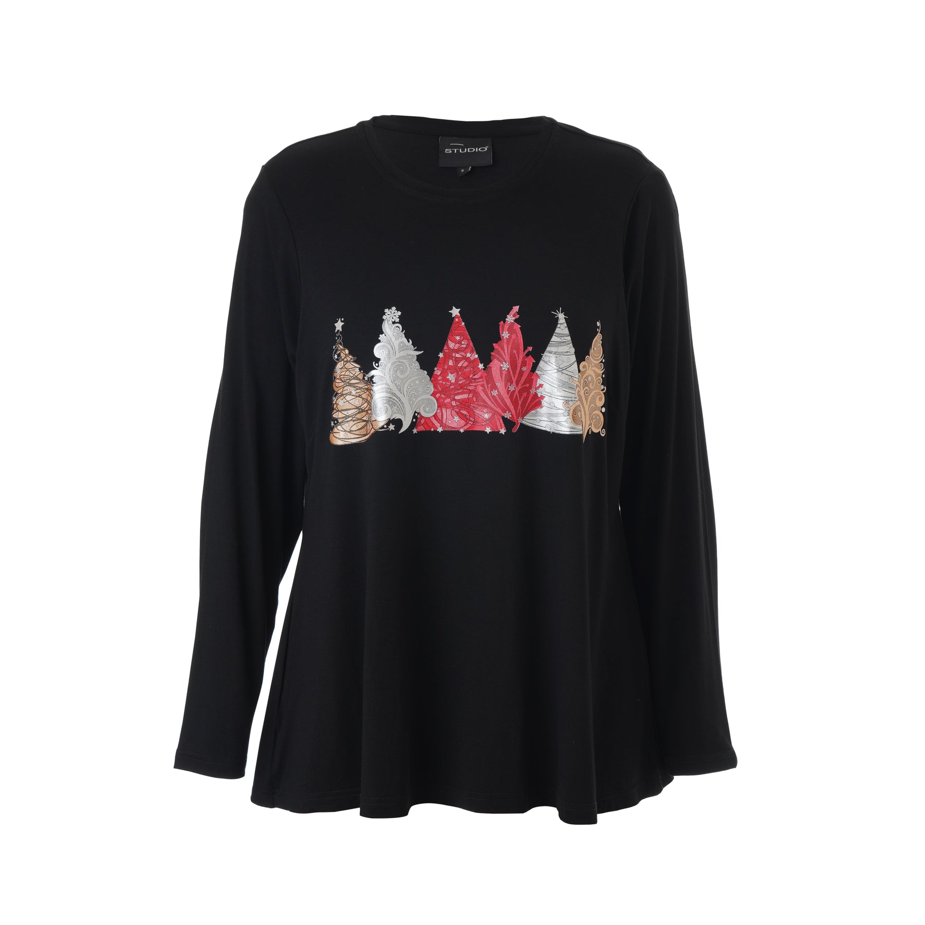Studio - Flottur og þægilegur langermabolur með rúnuðu hálsmáli og litríkri jólamynd að framan.