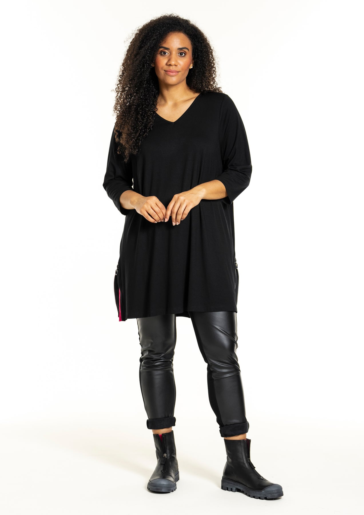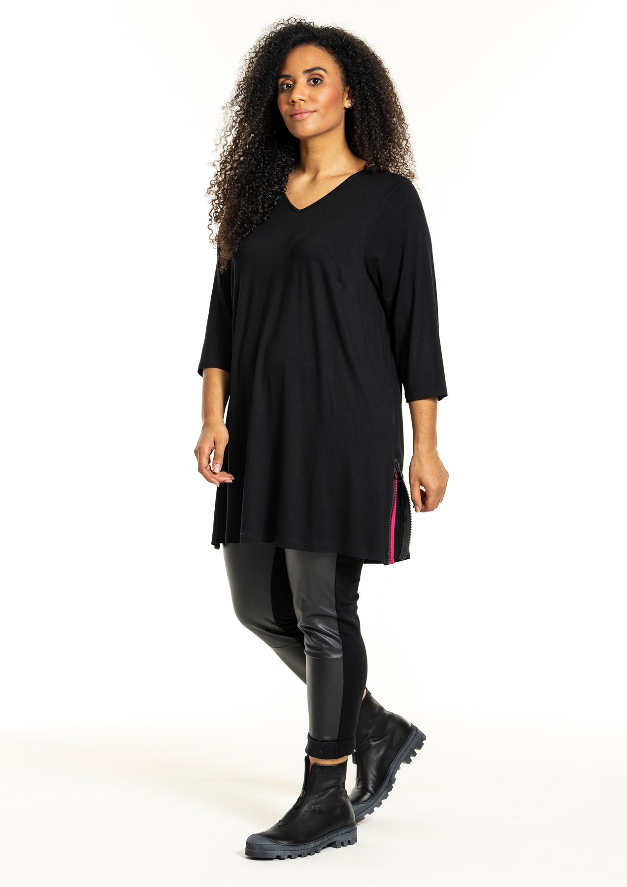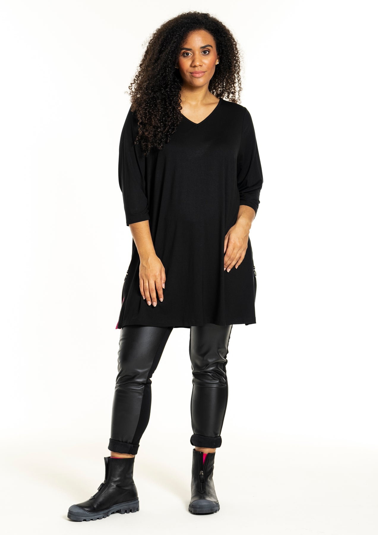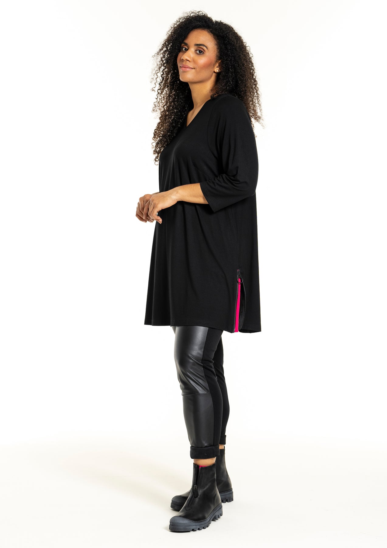 Studio - Isabea, tunika með V-hálsmáli og kvartermum, gott A-snið, rennilás upp í hliðar með litaðri klauf. Gengur bæði spari og hversdags.
