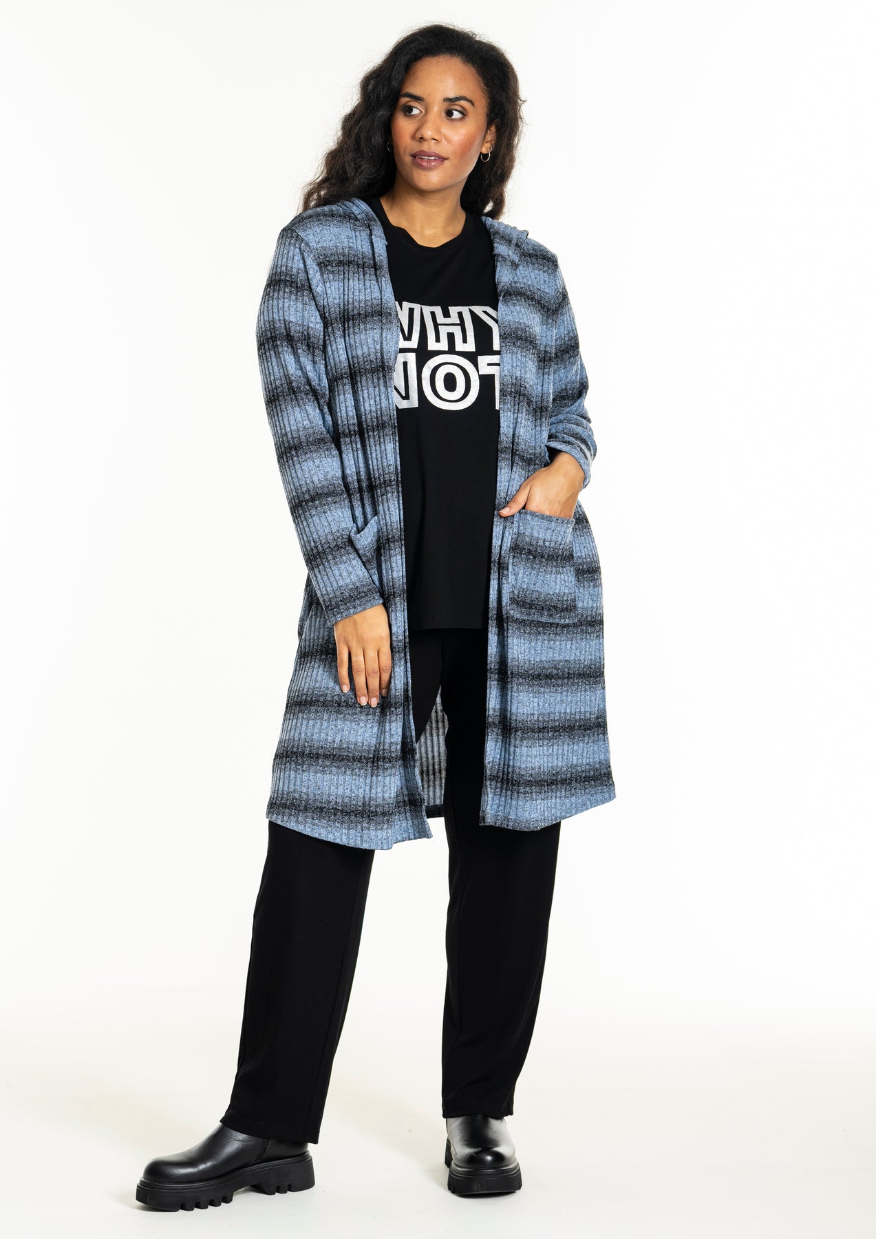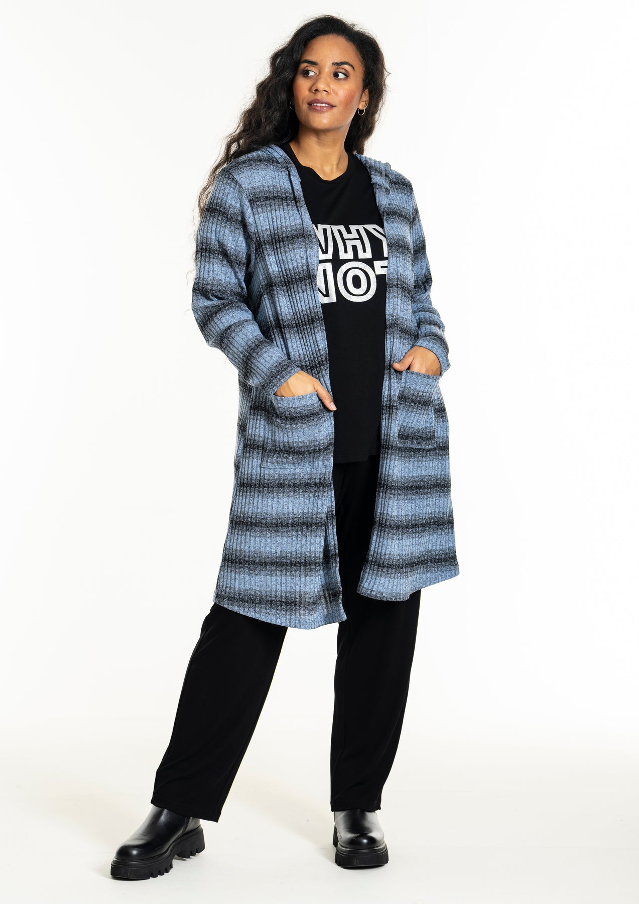 Studio - Marlene ofur mjúk og þægileg síð opin jakkapeysa með hettu og síðum ermum. Góðir vasar að framan, yrjótt efni. Frekar stór í númerum.