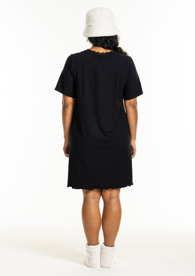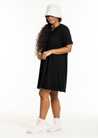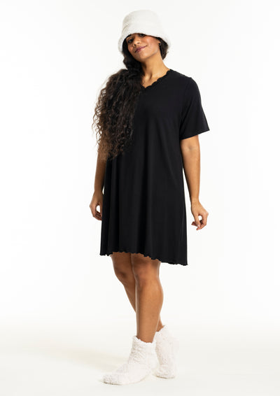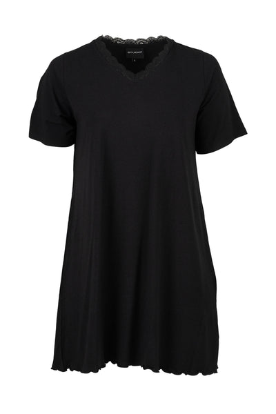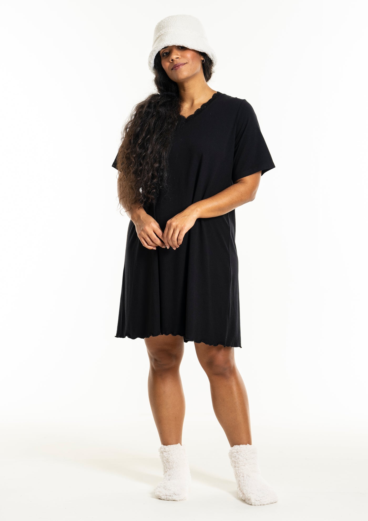 Studio - Tulle Mjúkur og þægilegur bambus náttkjóll með stuttum ermum, V-hálsmáli og blúndu í hálsmáli.