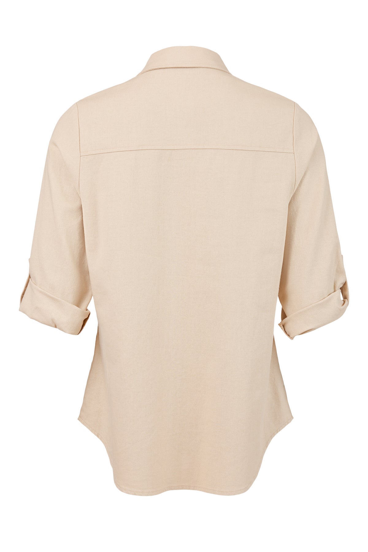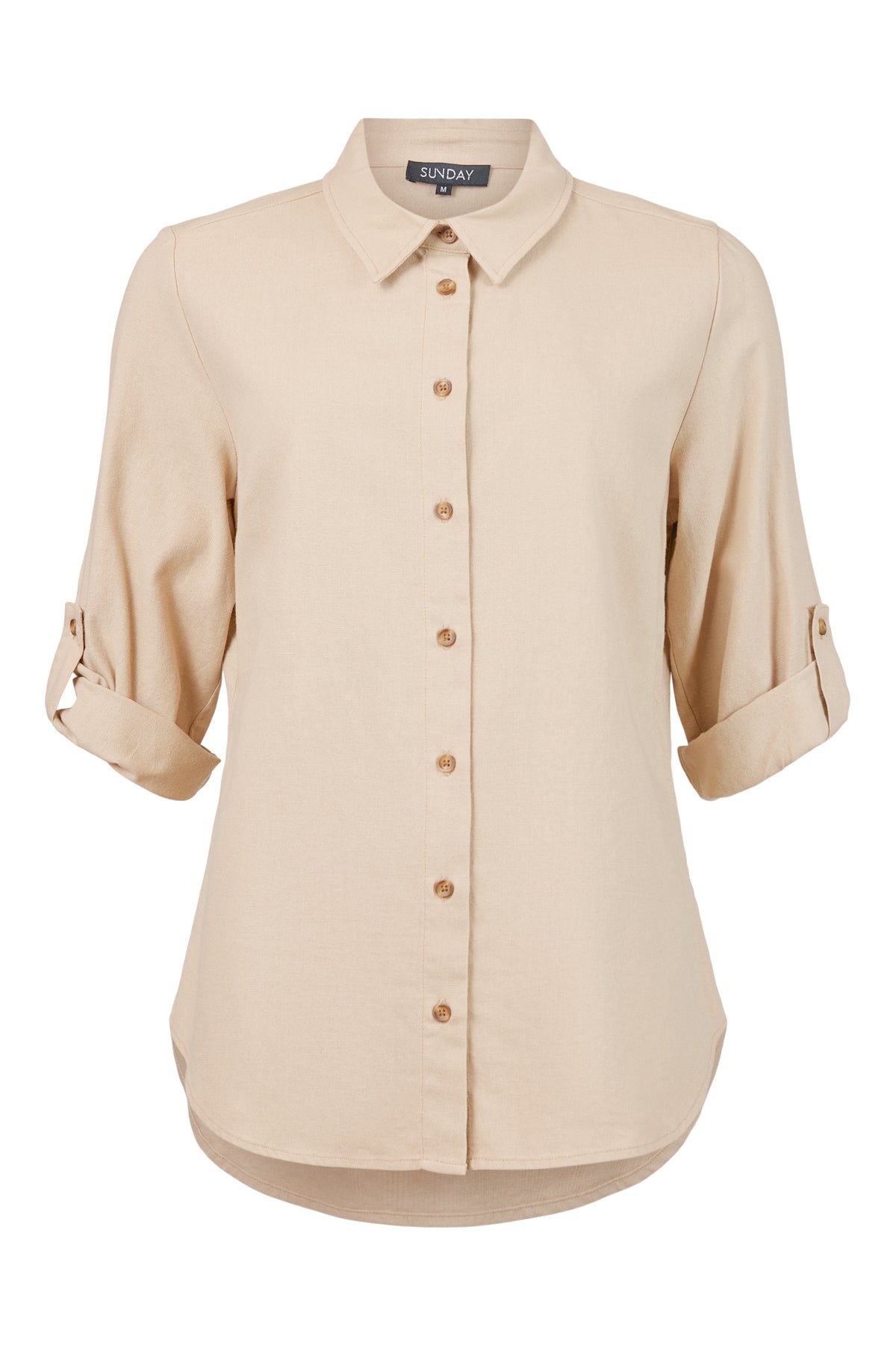 Sunday - Odilia hör skyrta. Kvartermar með tölu sem er hægt að festa upp, skyrtukragi, hneppt að framan og rúnuð að neðan. Frábær hvort sem hversdags eða spari.