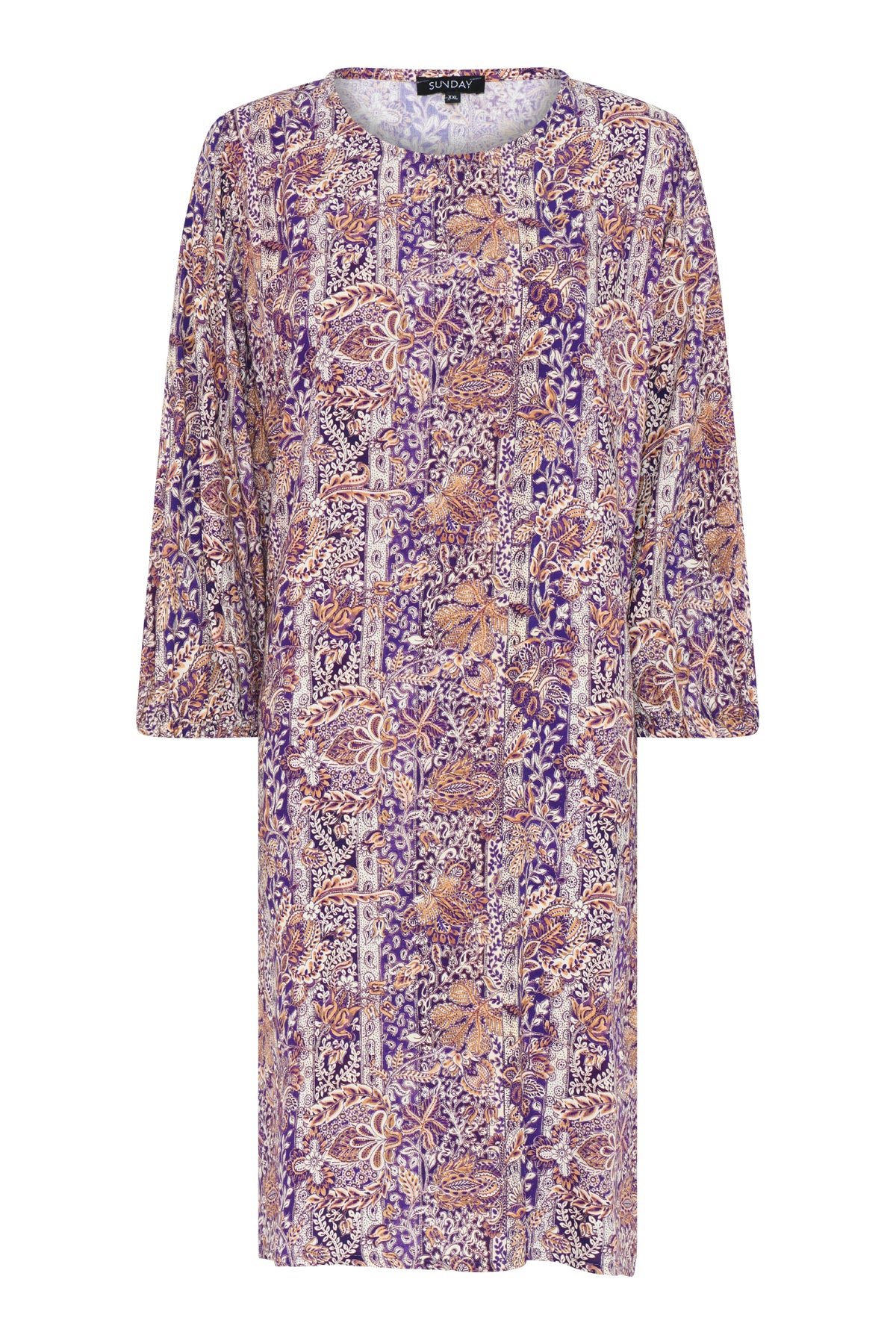 Sunday tunika með kvartermum og rúnuðu hálsmáli. Dálítið A-snið. Hægt að nota bæði sem spari og hversdags. Fallegt mynstur.