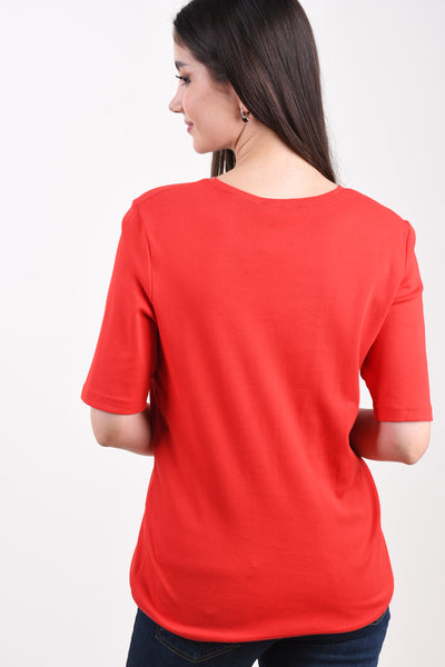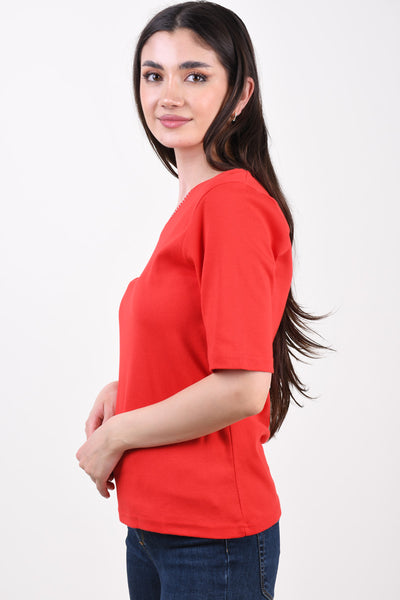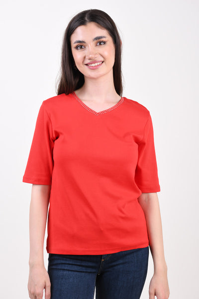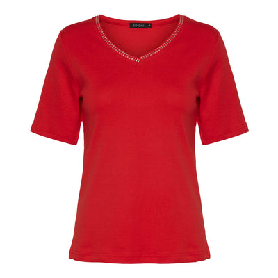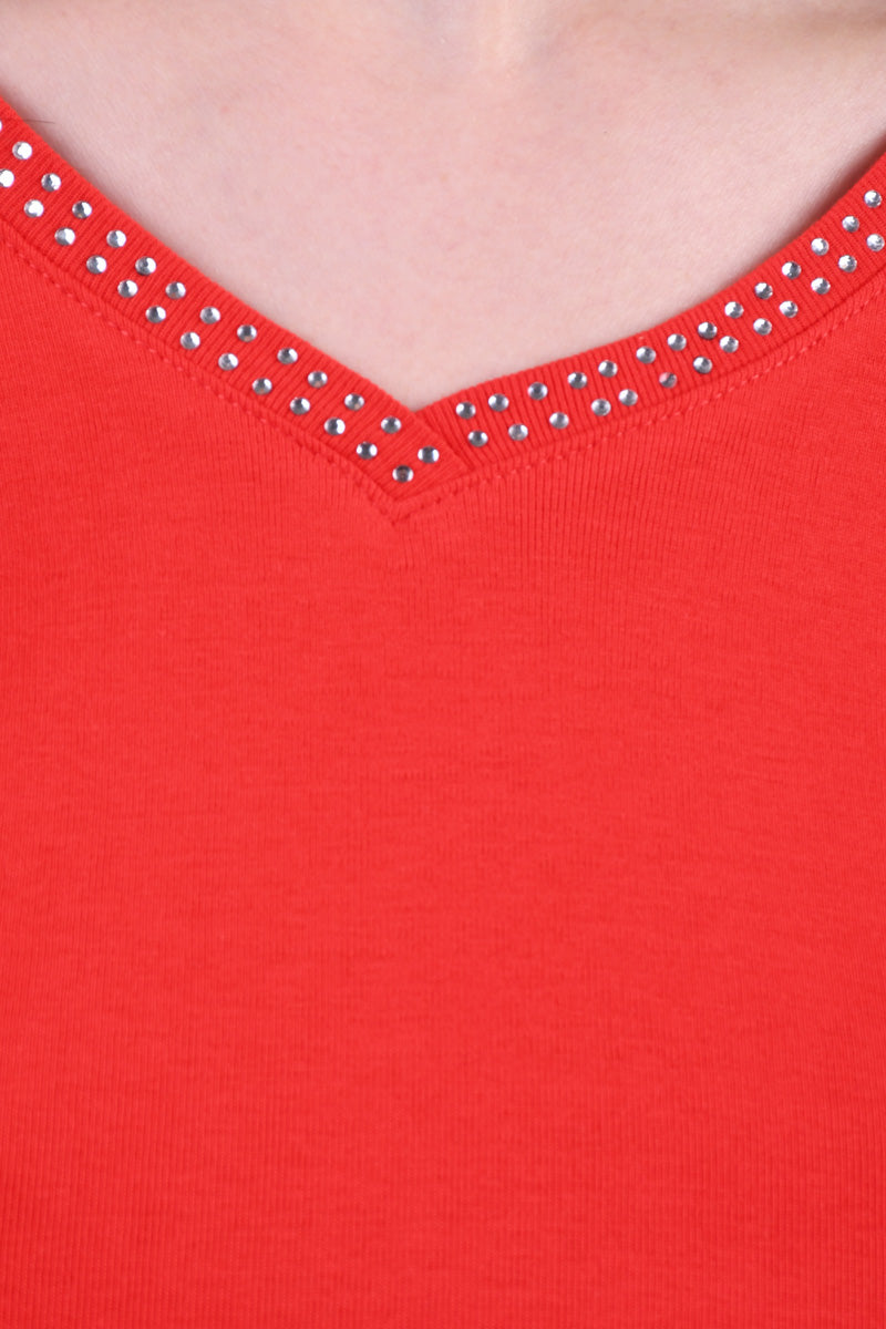 Sunday stuttermabolur með semelíusteinum og V-hálsmáli