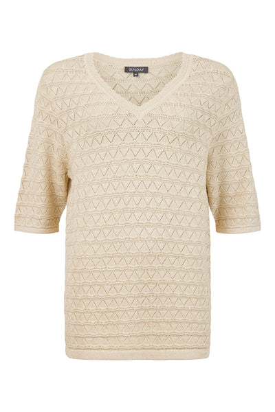 Sunday - Trixie flott og þægileg peysa með gatamynstri, kvartermum og V-hálsmáli, glitter í efni. Flott bæði spari og hversdags.