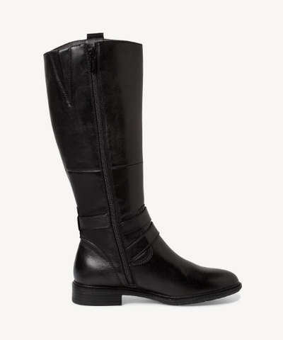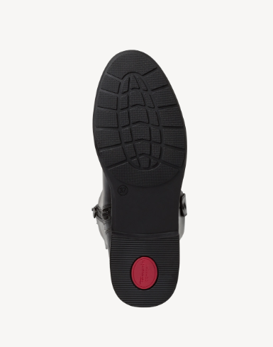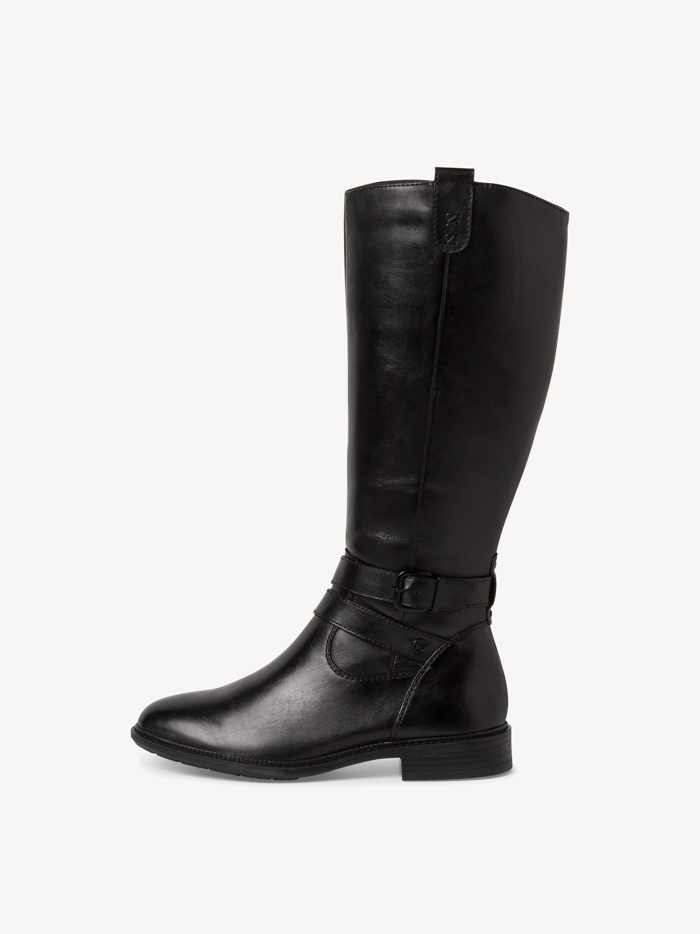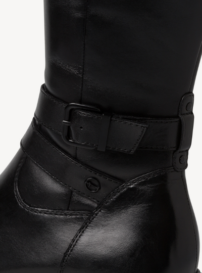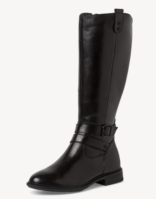 Tamaris Comfort - Klassísk há stígvél úr ekta leðri. Rúnuð tá, 3 cm hæll og fóður innan í, rennilás innanfótar, stillanleg ól utan um ökklann, spæl efst með útsaumuðum krossum sem, ekkert vesen að klæða sig í. Hægt að taka innleggið úr