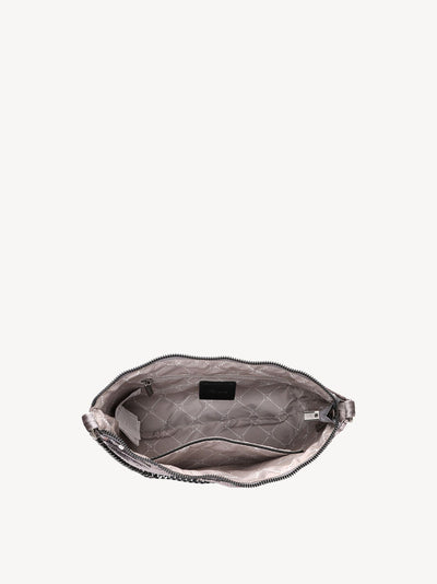 Rennt rúmgott hólf með einum vasa og renndu hólfi. Stillanleg axlaról fylgir með ásamt styttri keðjuól.