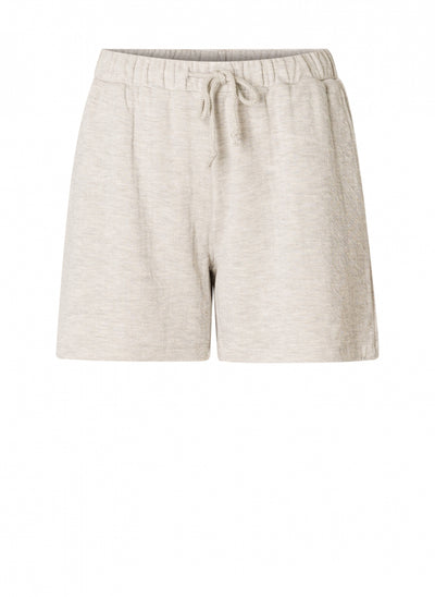 Yest, Ishinta stuttbuxur í ljósgráu, með hliðarvösum, teygju í mitti og reimum.