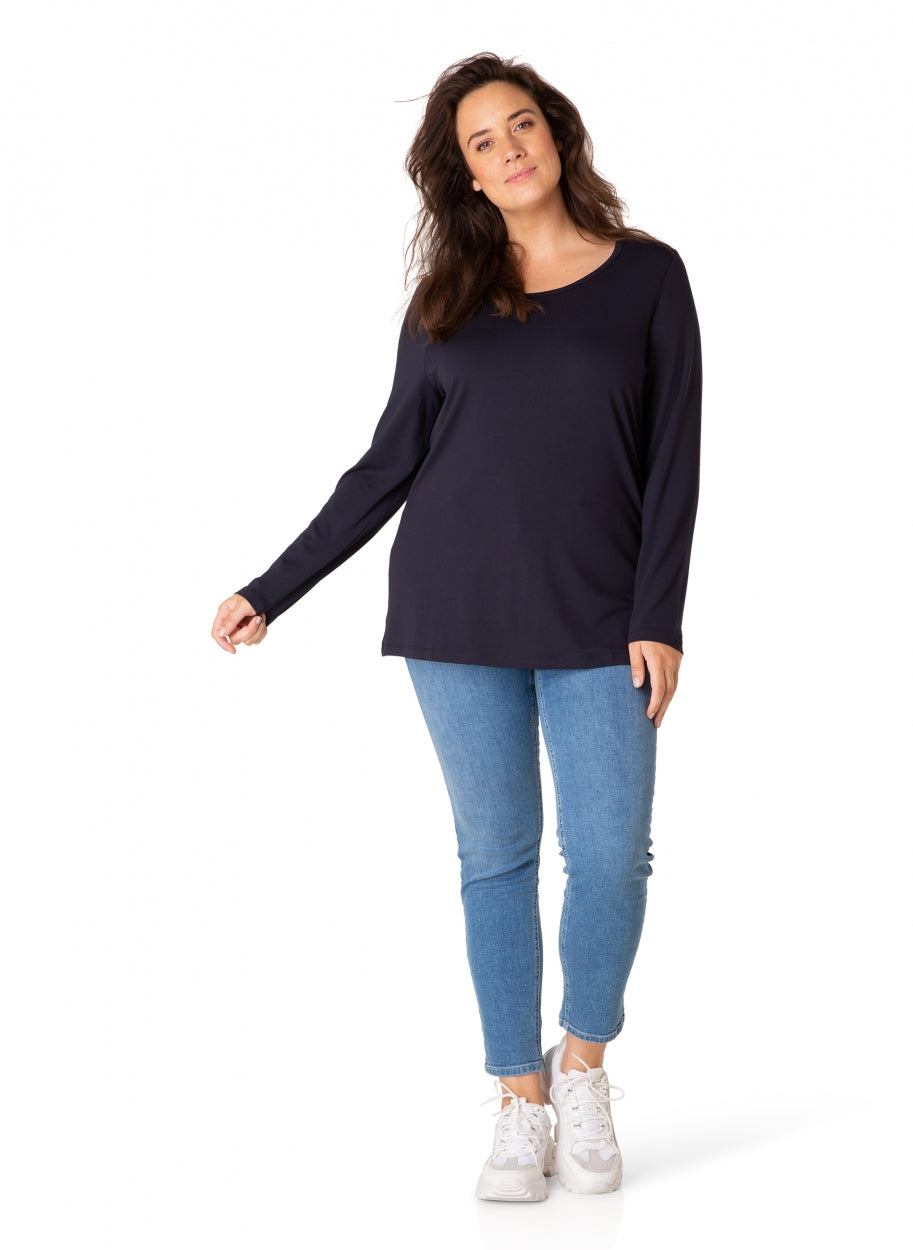 YestA - Einfaldur langermabolur með rúnuðu hálsmáli.