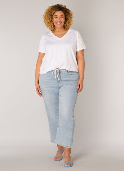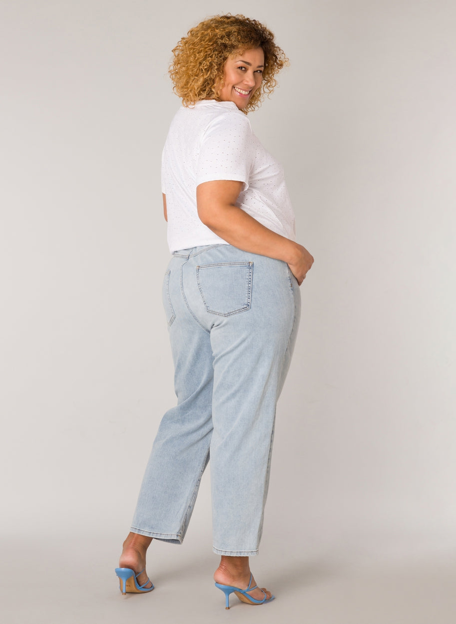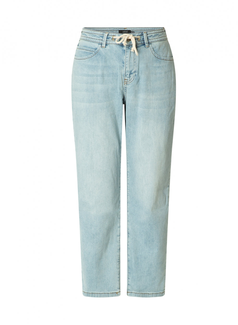 YestA ökklabuxur - beinar niður með tölu og rennilás og band í mitti. Vasar framan og aftan. Mjúkar og þægilegar gallabuxur.