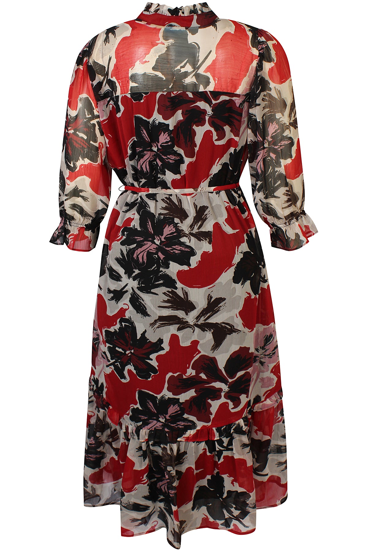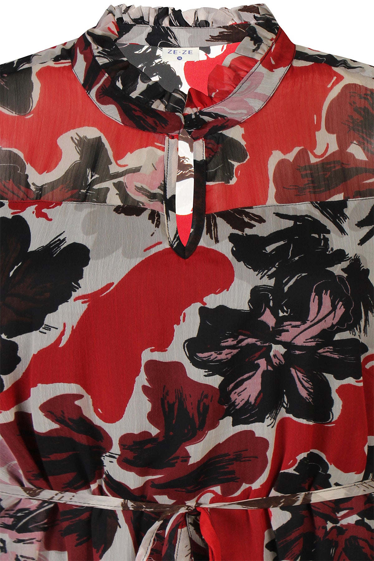 Ze-Ze - Clio sætur léttur hálfgegnsær kjóll með rúnuðum krafa með pífu. Áfastur undirkjóll úr mjúku teygjanlegu viscose. Kvartermar með teygju, band í mitti og þykk pífa að neðan.