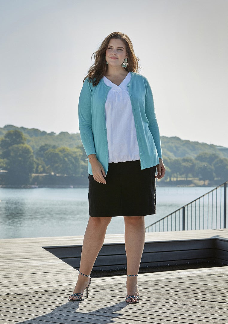 Öll mál eru tekin beint á líkamanum. Mælingarnar miðast við meðalhæð upp á 170 cm. Við mælum með að þú hafir einn fingur milli líkama og málbandar – þannig tryggirðu að flíkin sitji þægilega án þess að þrengja að.