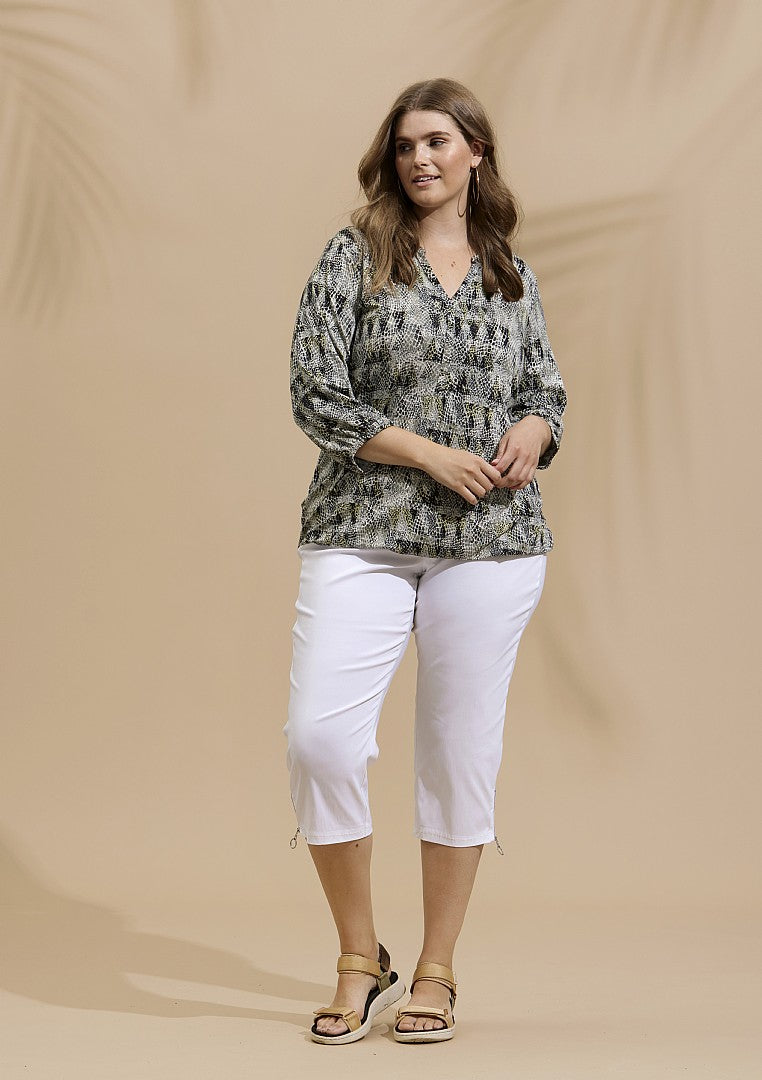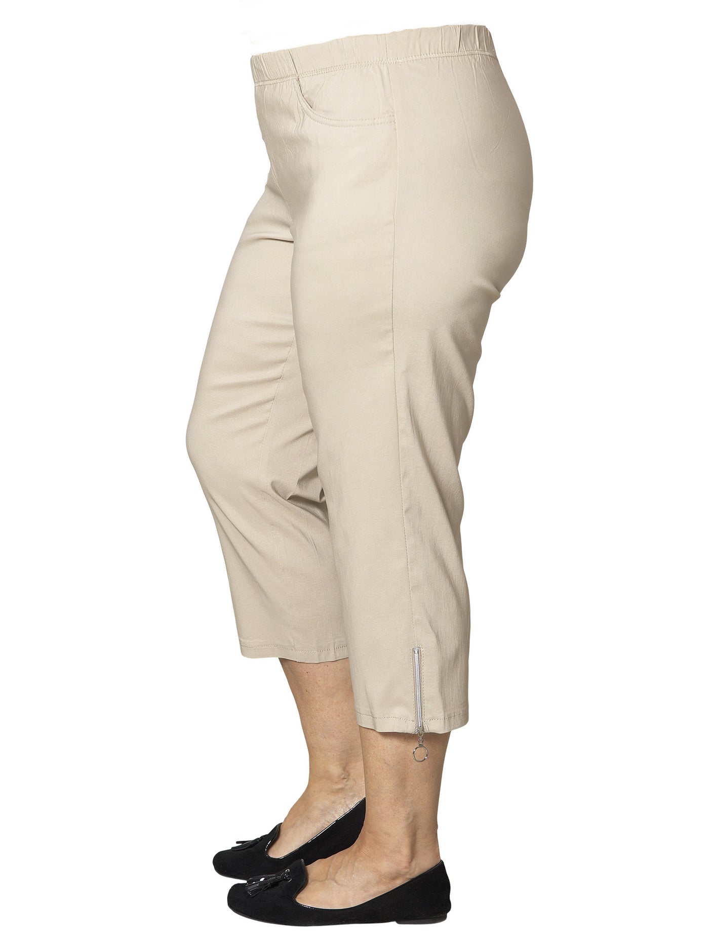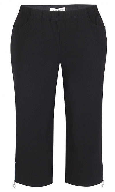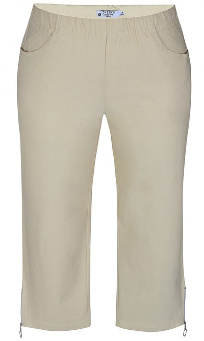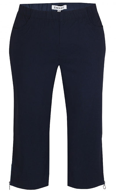 Zhenzi kvartbuxur, snið Jazzy, bengalin (strech) efni.  Vasar að framan, góð teygja í efni, teygja í mittinu, frekar beinar niður og rennilás neðst á skálmum, getur líka verið sportlegt og flott að hafa rennilásinn opinn.