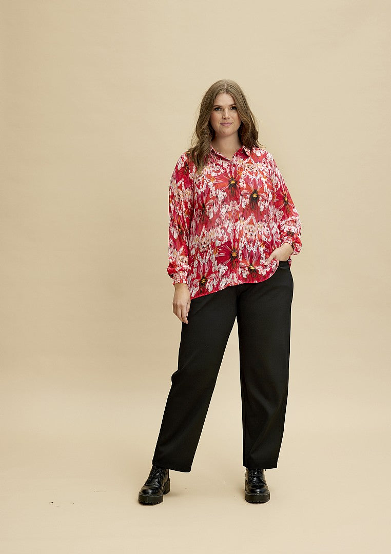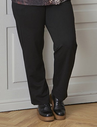 Zhenzi sparilegar síðbuxur. Góð teygja í efni og í mitti. Eru beinar niður, með vösum að framan og spælum fyrir belti.