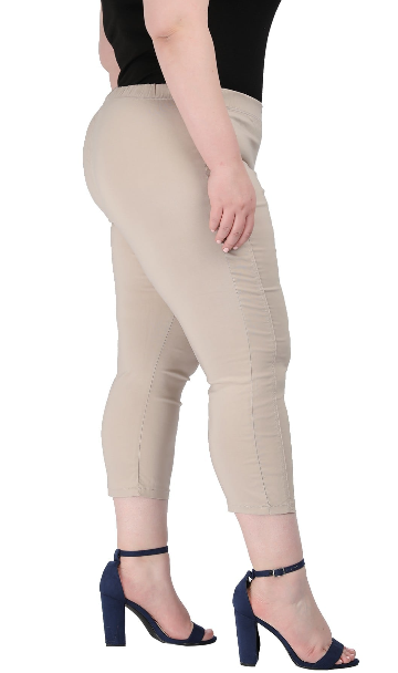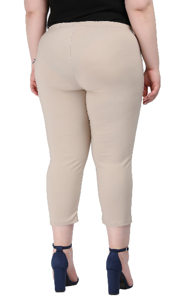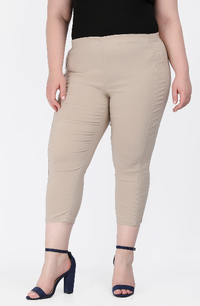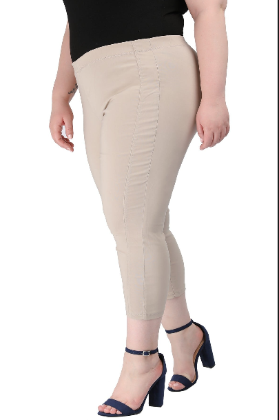 Góð teygja í efni, teygja í mittinu, þrengjast aðeins niður.
